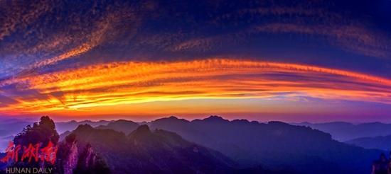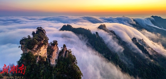 站在天子山巅,看初升旭日为万峰披上金甲,看翻腾的云涛漫过嶙峋石林,三年拼搏的汗水与呐喊,仿佛在此刻轰然升腾,化作天地间最壮阔的回响。
