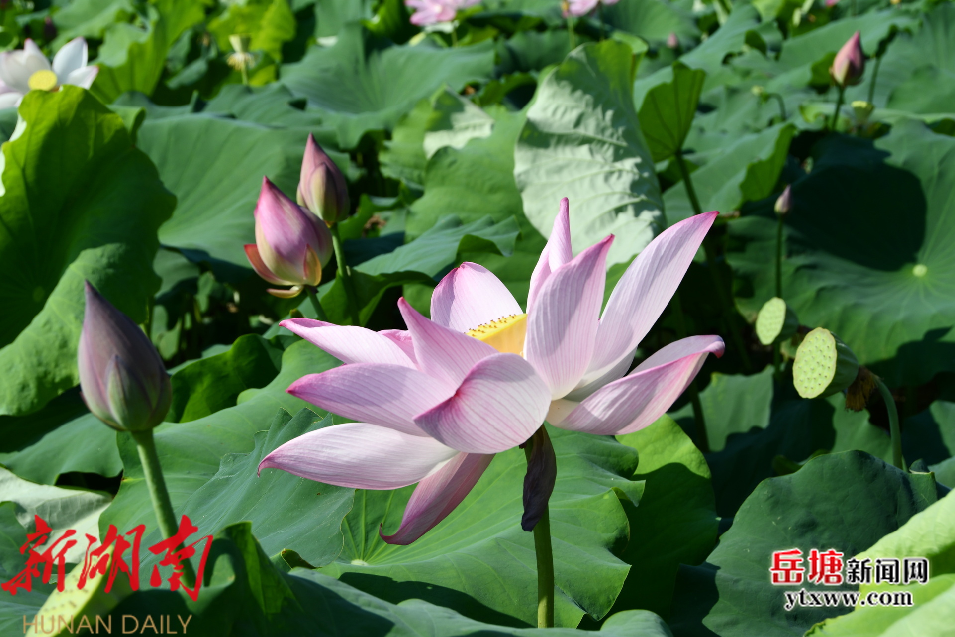 岳塘融媒7月5日讯 (通讯员 彭玲莉 彭凯)盛夏时节,岳塘区昭山镇楠木村的700余亩莲田迎来丰收季 。层层叠叠的莲叶间,粉白莲花竞相绽放,饱满的莲蓬缀满枝头,村民们穿梭其中采摘莲蓬,田间地头洋溢着丰收的喜悦。