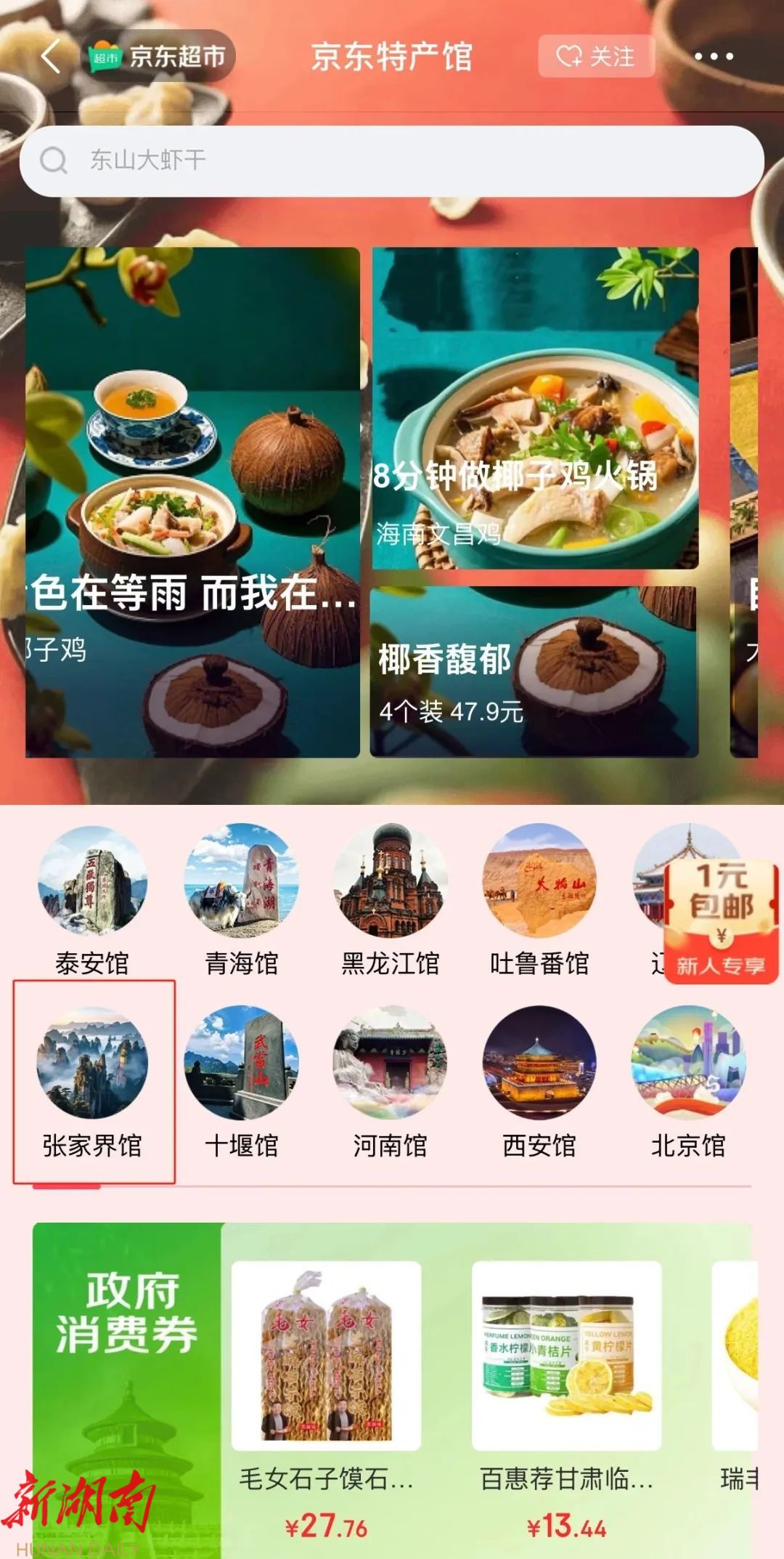 由中共张家界市委宣传部指导,张家界市融媒体中心(集团)牵头,张家界市商务局、张家界市贸促会、张家界市农业农村局、张家界市工信局、张家界市市场监督管理局联合建设的“京东中国特产馆·张家界馆”今日正式登陆京东平台!