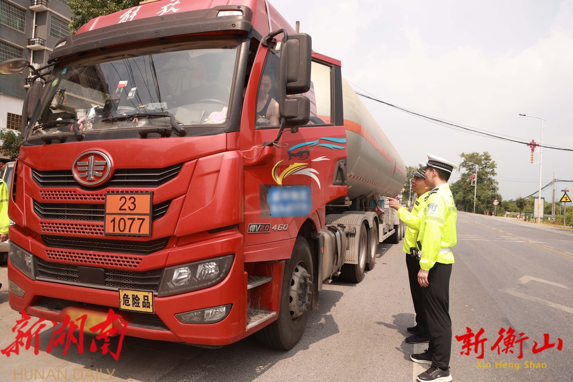 在重点运输路段,衡山县公安局交警大队治超中队也在高温下坚守岗位。他们设置临时检查点,对易燃易爆车辆、快递物流运输车辆进行“地毯式”排查,并同步开展夏季高温行车安全知识宣传。