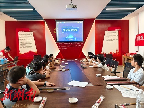 启动仪式上,社区党总支书记向孩子们送上寄语:“希望大家把社区当作成长的新课堂,在这里学本领、交朋友、长见识。”随后,雨湖区科协工作人员借助精美的PPT课件,以动态图文、趣味动画和短视频相结合的方式,开展“火灾安全逃生”科普知识讲座,深入浅出地讲解火灾成因、预防措施及逃生技巧。化学实验演示活动现场充满惊奇与欢笑,湖南科技大学志愿者以“魔法药水变变变”拉开序幕。只见透明的液体在试管中瞬间变成紫色,又在摇晃后恢复澄清,孩子们瞪大眼睛,发出阵阵惊叹,他们在神奇的化学反应中感受科学魅力。书法课堂上,从起笔的藏锋到收笔的回锋,湘潭市委老干部局银发人才工作站老干部们用丰富的教学经验,将书法技巧融入通俗易懂的讲解中,让孩子们在挥毫泼墨间感受汉字之美,在传统文化的滋养中厚植文化自信,传承中华文脉……