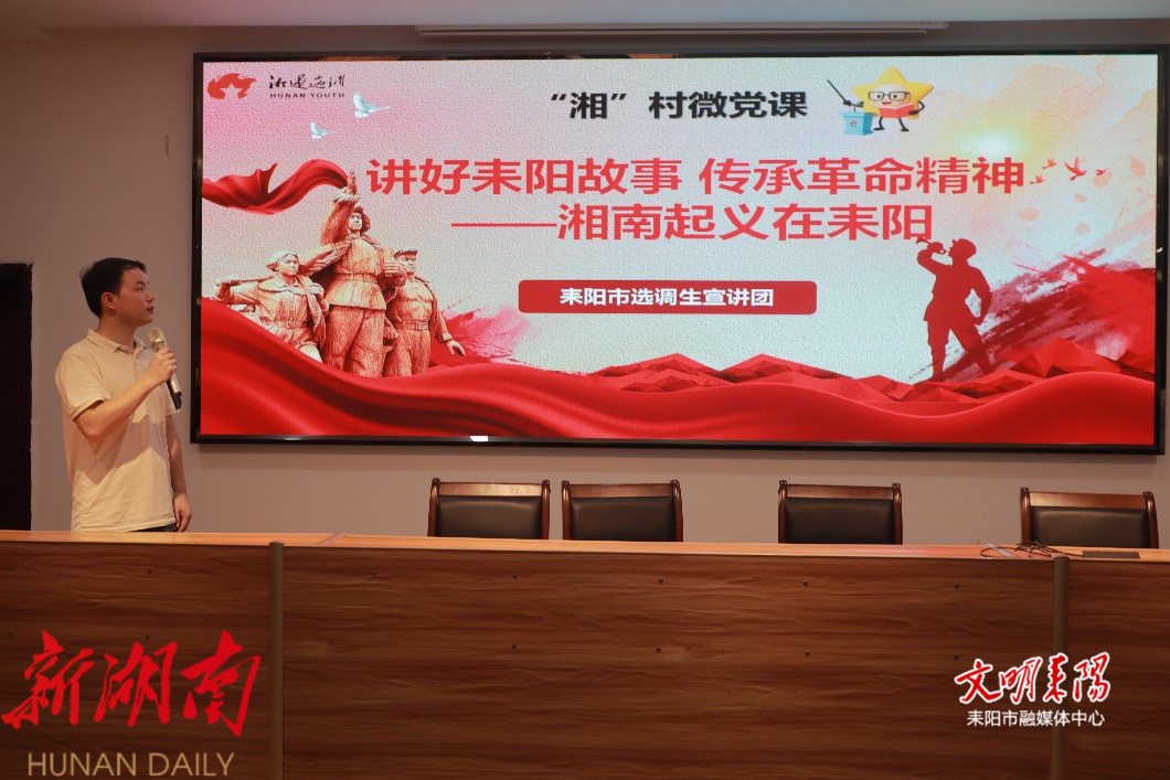 自“湘”村微党课活动开展以来,耒阳市选调生积极行动,先后走进社区、村庄、学校、红色教育基地等地,向基层党员、群众和青少年学生送去了一堂又一堂生动的法治宣传课、政策宣讲课、红色教育课,推动党的思想在基层广阔土地上生根发芽。
