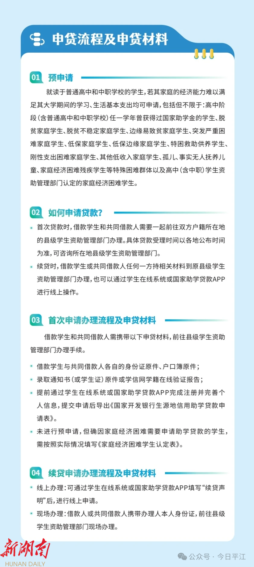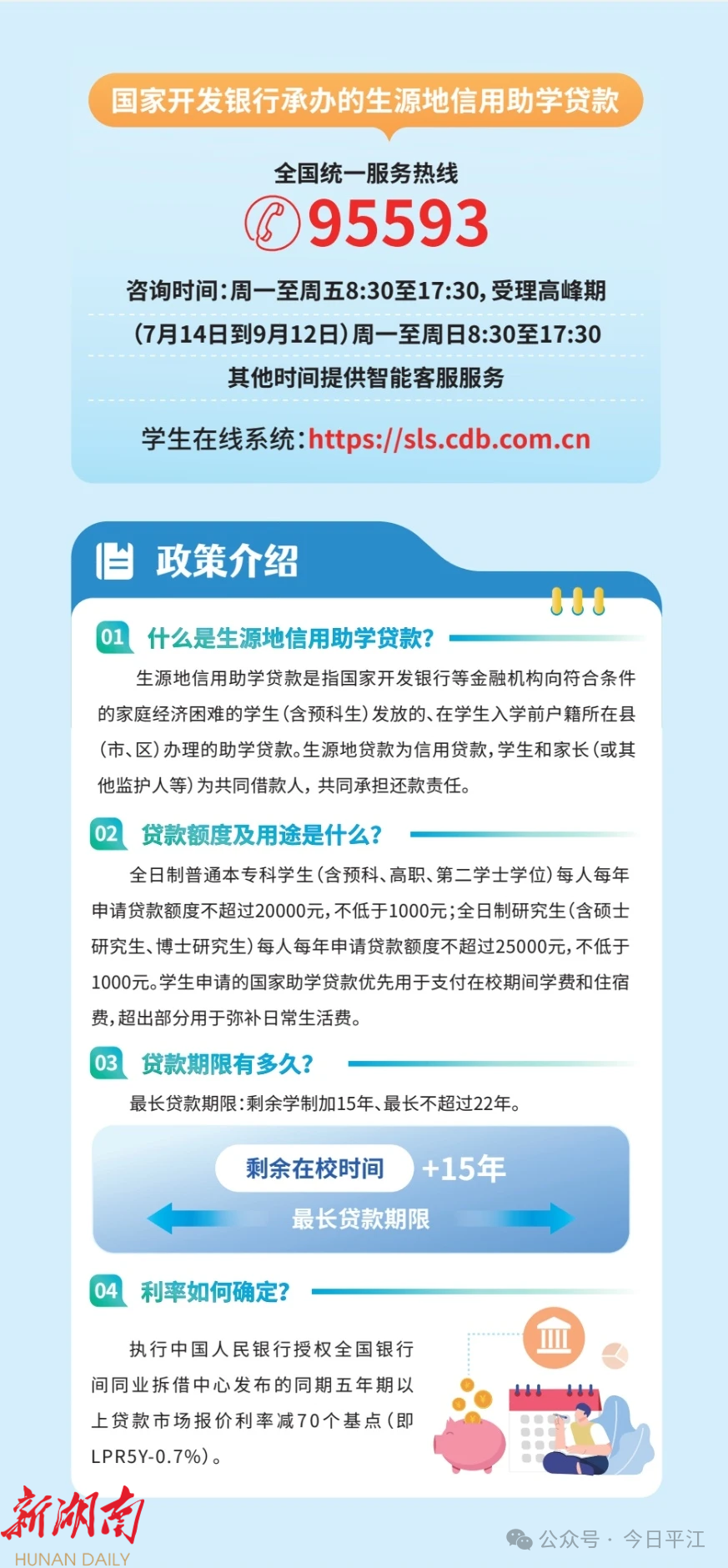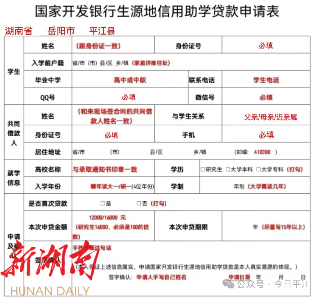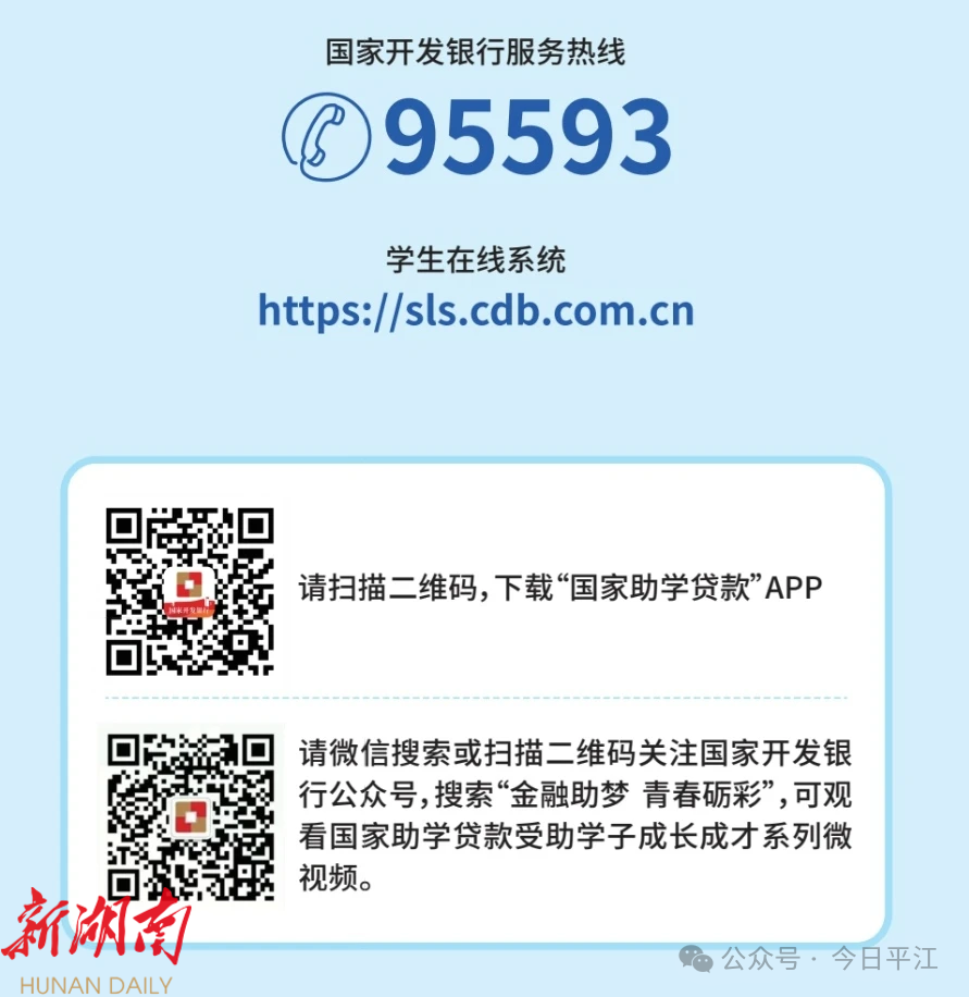 办理地点: 平江县教育局前栋1楼生源地助学贷款办理中心(三阳乡平源村)。