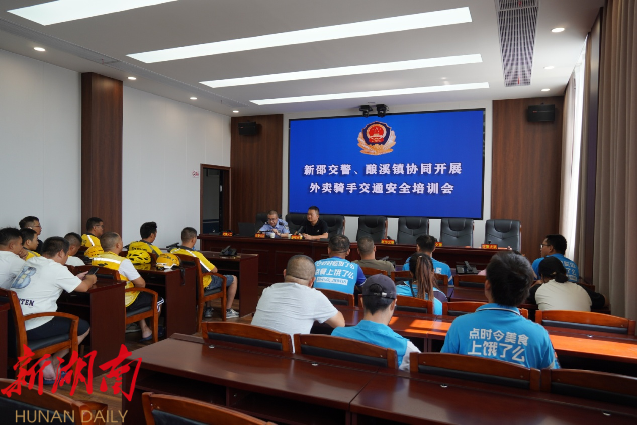 新邵交警联合酿溪镇为外卖骑手送上“交通安全快餐”