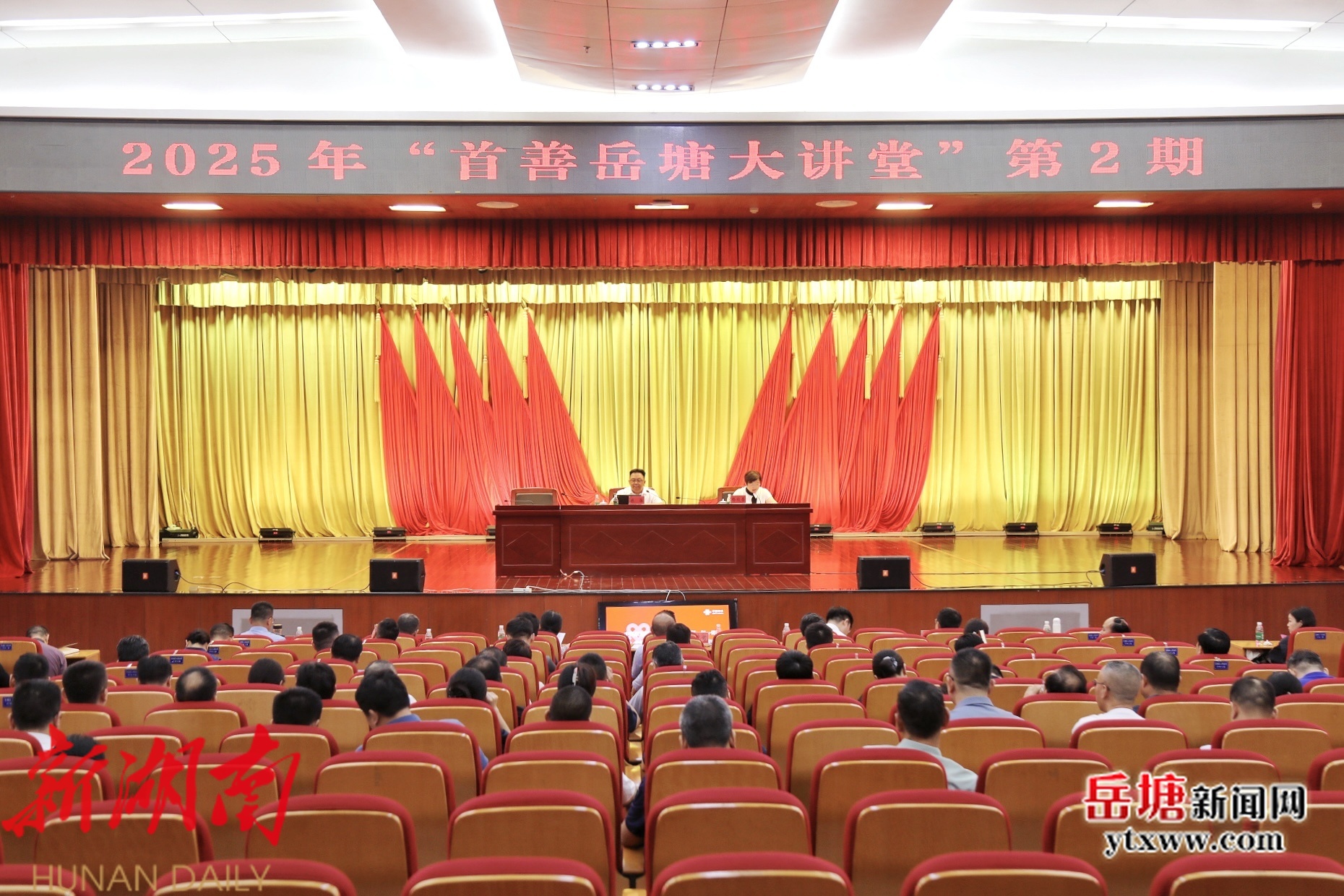 岳塘融媒7月8日讯 (通讯员 康艳)7 月 8 日, 2025 年“首善岳塘大讲堂”第 2 期开讲。湘潭市人大常委会副主任、党组成员,岳塘区委书记曾志君,岳塘区委副书记、区长周赏玲出席,区领导陈交云、颜谦、周中秋、胡轶飞、唐俊杰、马冬泉、冯国帅、伍意明等参加,杨欣荣主持并作总结讲话。