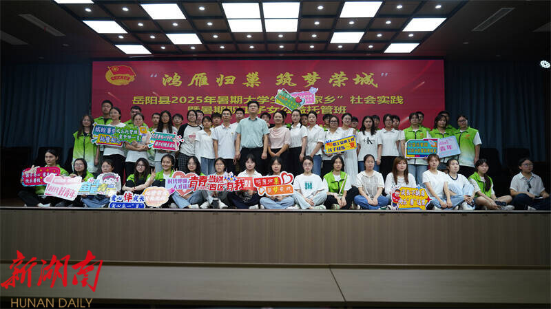 湖南日报·新湖南客户端7月9日讯(通讯员 周星亮) 7月8日上午,岳阳县2025年“鸿雁归巢 筑梦荣城”暑期大学生“返家乡”社会实践暨职工子女公益托管班正式开班。139名岳阳县籍大学生将奔赴55家机关企事业单位开展实践锻炼,296名职工子女将在志愿者的陪伴下开启趣味暑假。一场惠及两代人的“盛夏之约”,为这座荣城注入蓬勃朝气。