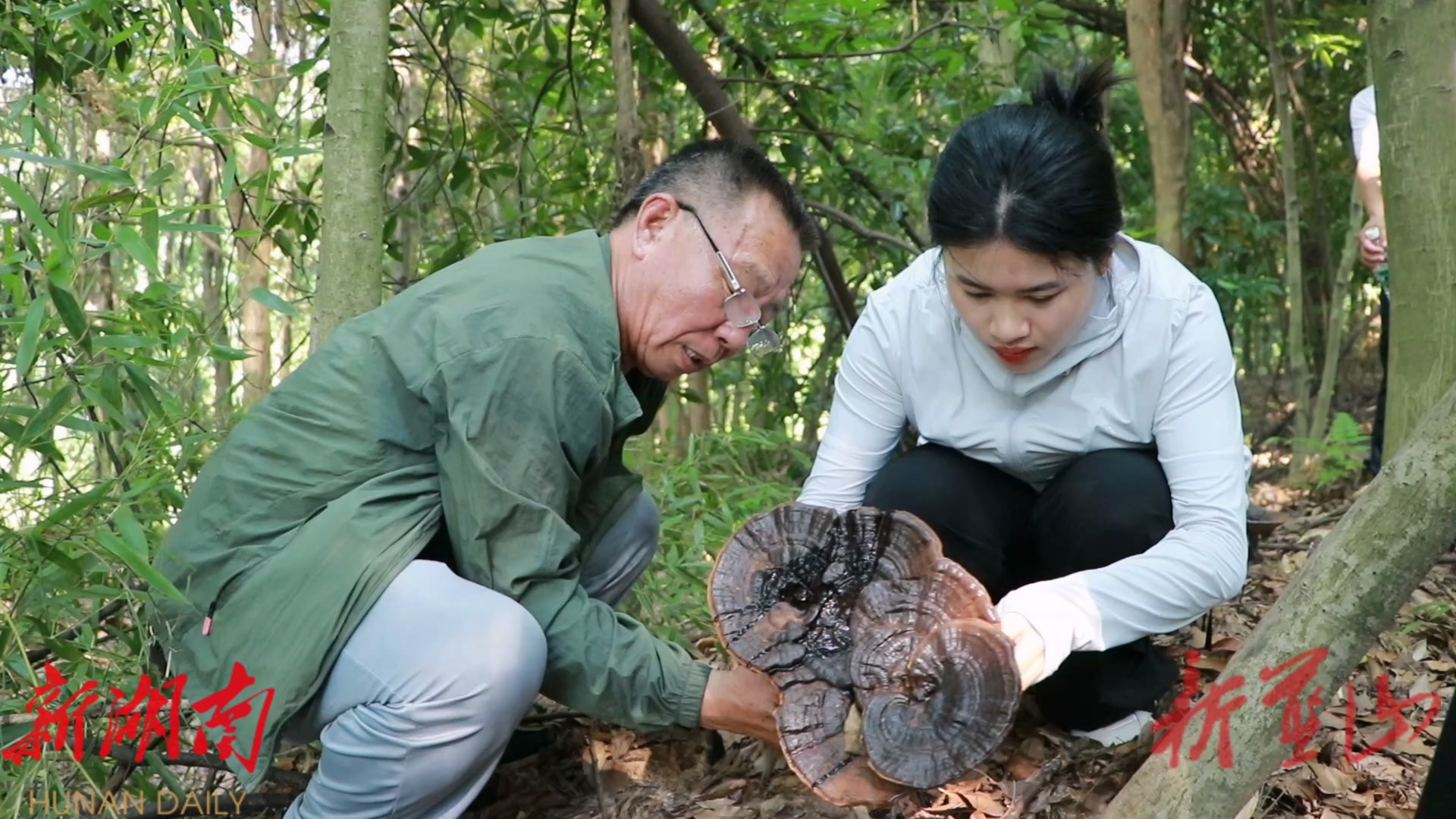 晨曦初露,空气中飘荡着淡淡的药香。走进太平圩镇桐木林村紫灵芝种植基地,呈现出一派生机盎然的景象。紫褐色的灵芝宛如艺术品,错落有致地排列着,每一朵都肉质匀厚,个头饱满,如同精致的小伞。工人们穿梭在林间,忙着采摘、装袋、搬运、铺晒,每一道工序都井然有序,整个山林弥漫着丰收的喜悦。种植户唐仁溪带着女儿唐穗菊一同查看灵芝长势,教她如何辨认已经成熟的灵芝,传授采摘诀窍。