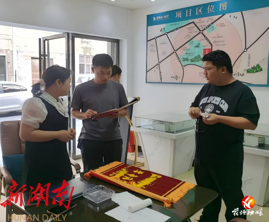 7月9日上午,花垣县自然资源局不动产登记中心工作人员将交付一年多的星梦园住宅小区二期H栋住宅的不动产权证书上门送到了业主们的手上。