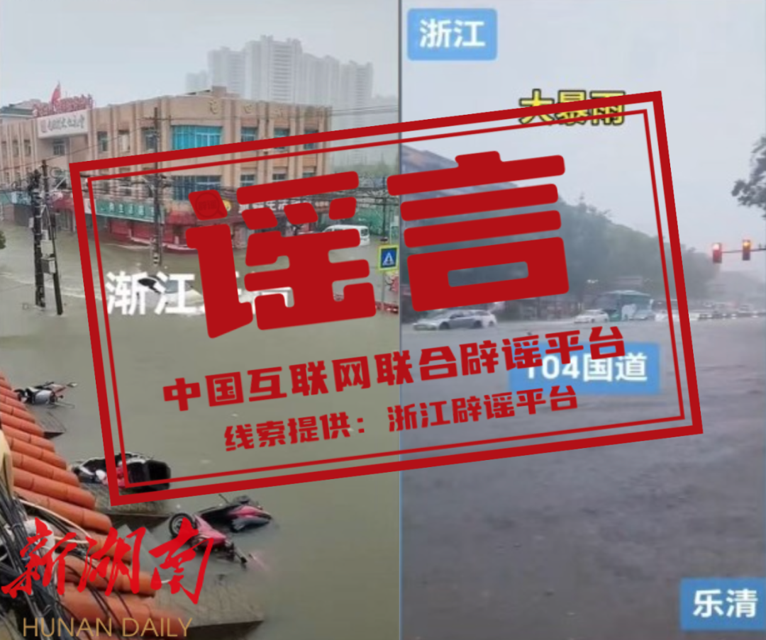 真相: 近日,有网民在社交平台发布内容为“浙江乐清因台风影响,路面严重积水”“乐清104国道因台风影响,有积水堆积”的视频,引发关注。经核实,乐清当地并未发生上述汛情,网传内容系不实信息。(来源:“温州辟谣”微信公众号)