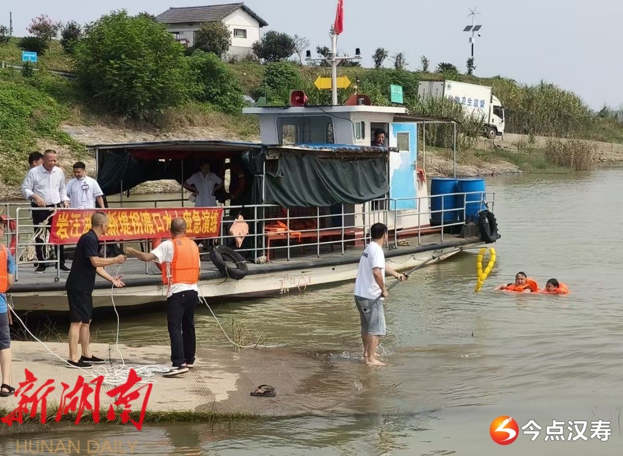 汉寿融媒7月10日讯 (通讯员:饶梓露)7月9日,汉寿县岩汪湖镇在新堤拐渡口近岸水域,开展了一场乘客落水救援和外伤医疗急救演练。