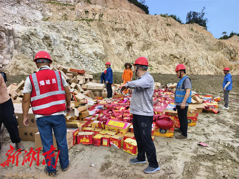 湖南日报·新湖南客户端7月10日讯(通讯员 潘金良) 7月9日上午,岳阳县公安局治安大队联合应急管理局等单位,在公田镇一处采石场空旷地带,对近期依法收缴的4000余件非法烟花爆竹进行集中销毁,切实消除安全隐患。