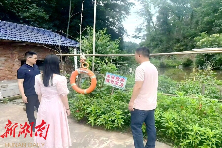 视外桃源客户端7月04日讯(通讯员:庄茜菡)“你看,这根救生竹竿都旧了,真遇上事咋顶用?”佘家坪镇纪检监察干部正在赫曦峪村的水塘边检查救生竹竿,竹竿的裂口被手指一捏,几片竹屑簌簌落下。负责这片水域的巡查员二话不说,立刻扛来一根崭新竹竿替换上。