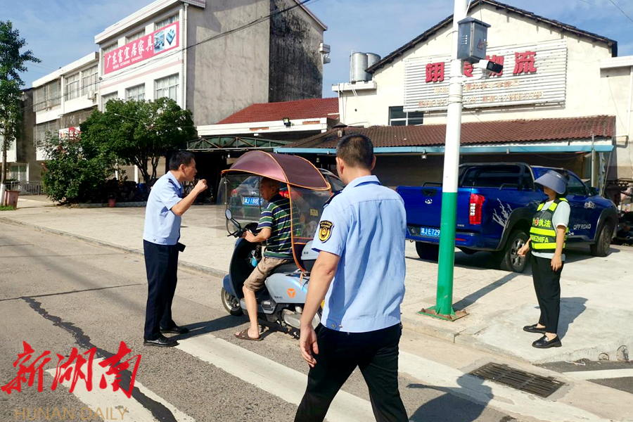 视外桃源客户端7月04日讯(通讯员:雷博文)“头盔戴上是安全,侥幸心理要抛开!”近日,架桥镇综合行政执法大队联合派出所开展的“流动课堂”又准时出现在集镇主干道交叉口。两支各由5名执法骨干组成的巡查小队,通过每日早晚高峰驻点值守、平峰时段动态巡查,将交通安全教育融入日常,让规范骑行意识深入人心。