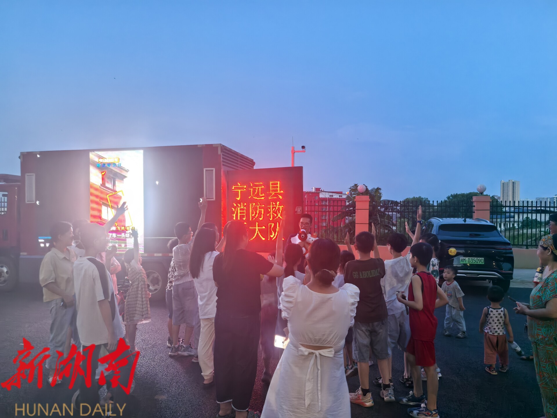 湖南日报·新湖南客户端7月10日讯(通讯员 郭冬祥 ) 近日,宁远县消防救援大队走进文庭雅苑小区开展夜间消防宣传活动,吸引众多居民参与。
