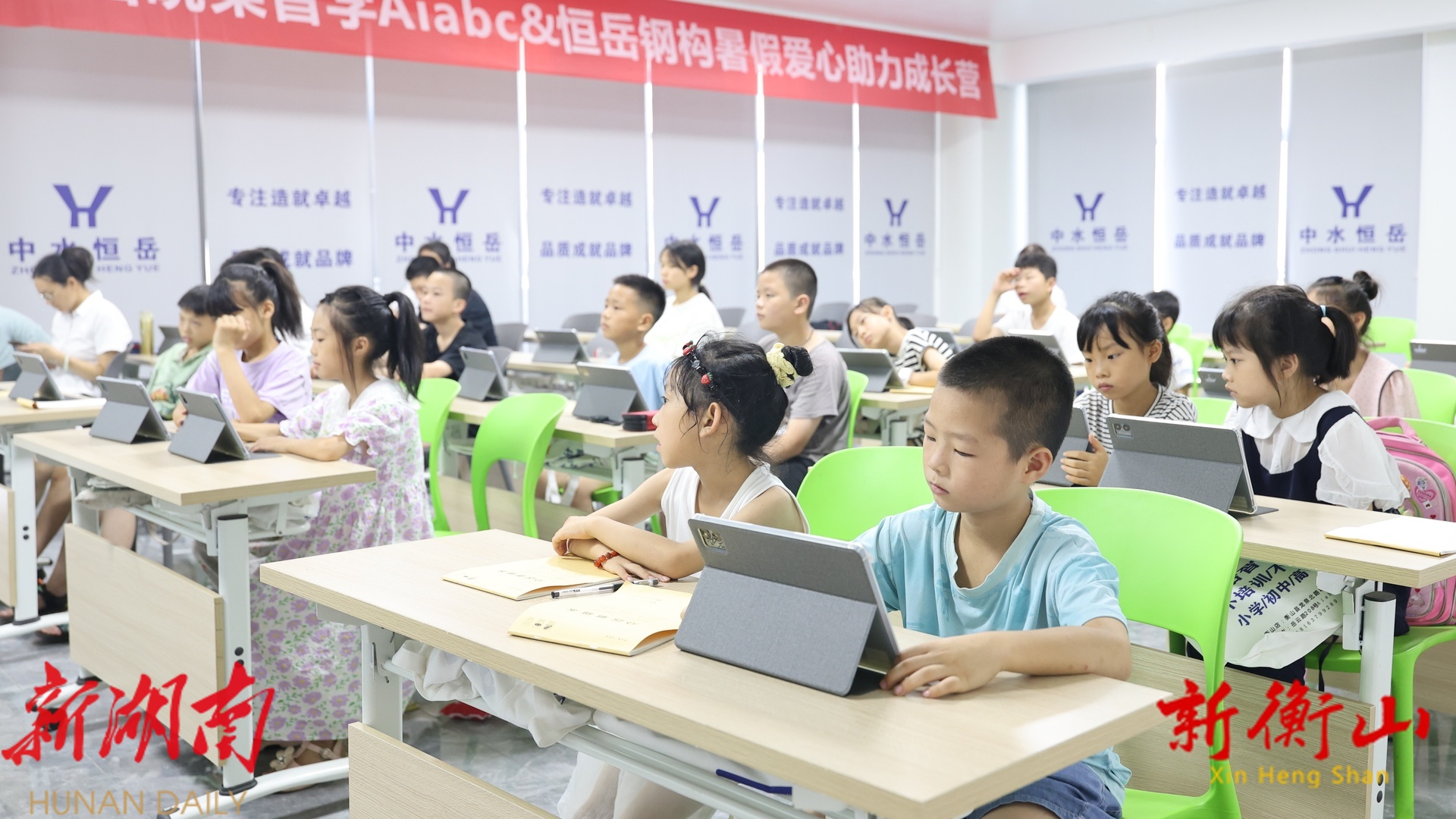 近年来,恒岳钢构一直致力于职工关怀,已连续三年免费为职工子女开设暑假班。今年,该企业投入十余万元引入AI学习系统,并配备专业辅导老师,确保20多名职工子女都能享受到优质的暑假学习体验。