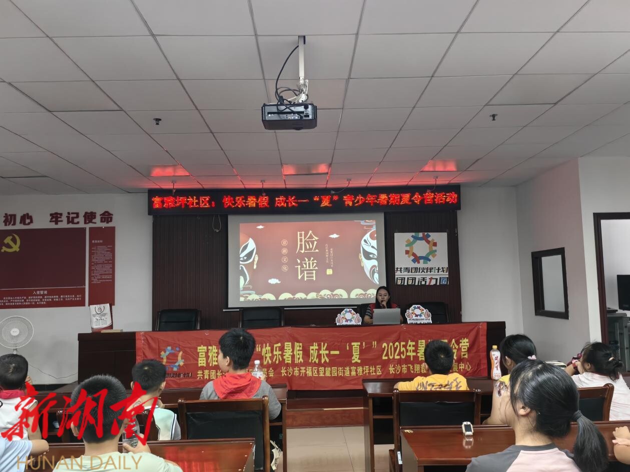 湖南日报·新湖南客户端7月10日讯(通讯员 朱秀云)为丰富辖区青少年暑期生活,弘扬中华优秀传统文化,7月8日下午,开福区望麓园街道富雅坪社区联合长沙市飞翔教育创新发展中心,在社区新时代文明实践站组织开展了“京剧脸谱绘童趣 国粹雅韵润童心”青少年京剧文化体验活动,吸引了20余位青少年积极参与。