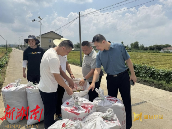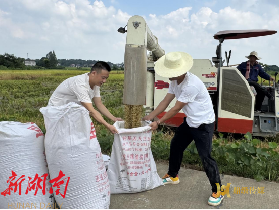 测产现场,农技人员和“三农”工作队队员严格按照测产要求,手持量规精准划定取样面积,随后进行农机收割、装袋称重,并详细记载数据,整个过程严谨细致、有条不紊。经过一番紧张忙碌的测算,好消息传来:“‘三农’工作队负责的三个田块样本结果分别是1158.6斤/亩、1194.4斤/亩、1115斤/亩,平均亩产量达1156斤,达到预期产量目标,喜获丰收!”