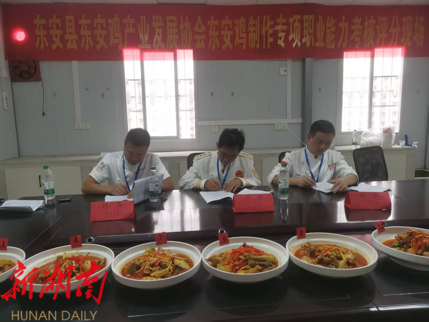 2025年1月,湖南省人社厅批准将“东安鸡制作”专项职业能力考核纳入全省2025年第一批专项职业能力考核开发项目。东安鸡产业发展协会组织专家制定标准化考核规范,开发完善考核试题库,新建标准化考核场地,配备现代化考核设施设备,确保考核内容与职业技能需求精准匹配。2025年4月28日,“东安鸡制作”专项职业能力考核站通过省人社厅评估验收并授牌,彻底改变“东安鸡制作”培训不规范、考核无标准的历史。截至6月底,该考核站已组织3批次“东安鸡制作”专项职业能力考核,共有200余名劳动者报名参加考核,考核通过率90%以上。