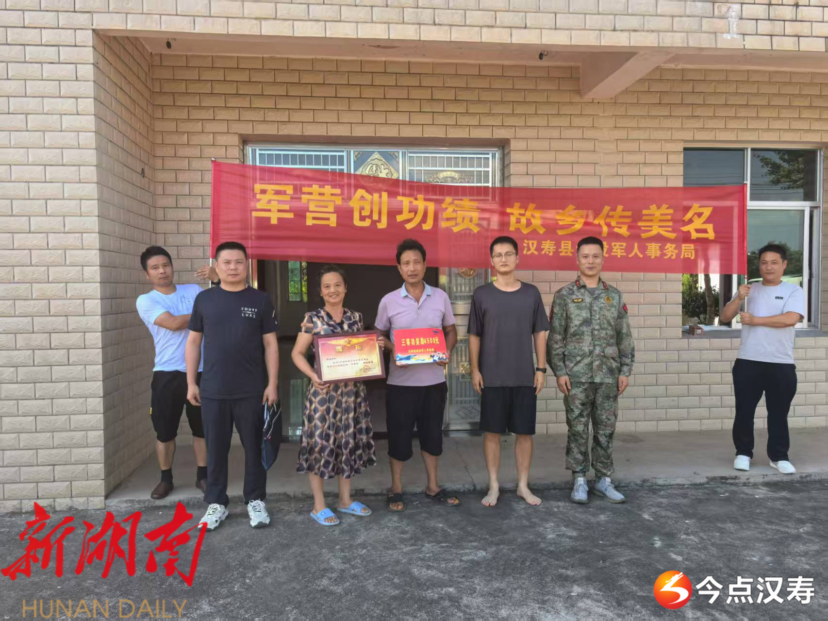汉寿融媒7月11日讯 (通讯员:蔡进程)7月10日,汉寿县退役军人事务局联合岩汪湖镇武装部及退役军人服务站,为辖区内两名荣立三等功的现役军人家属送去立功喜报,让“光荣之家”再添荣光。