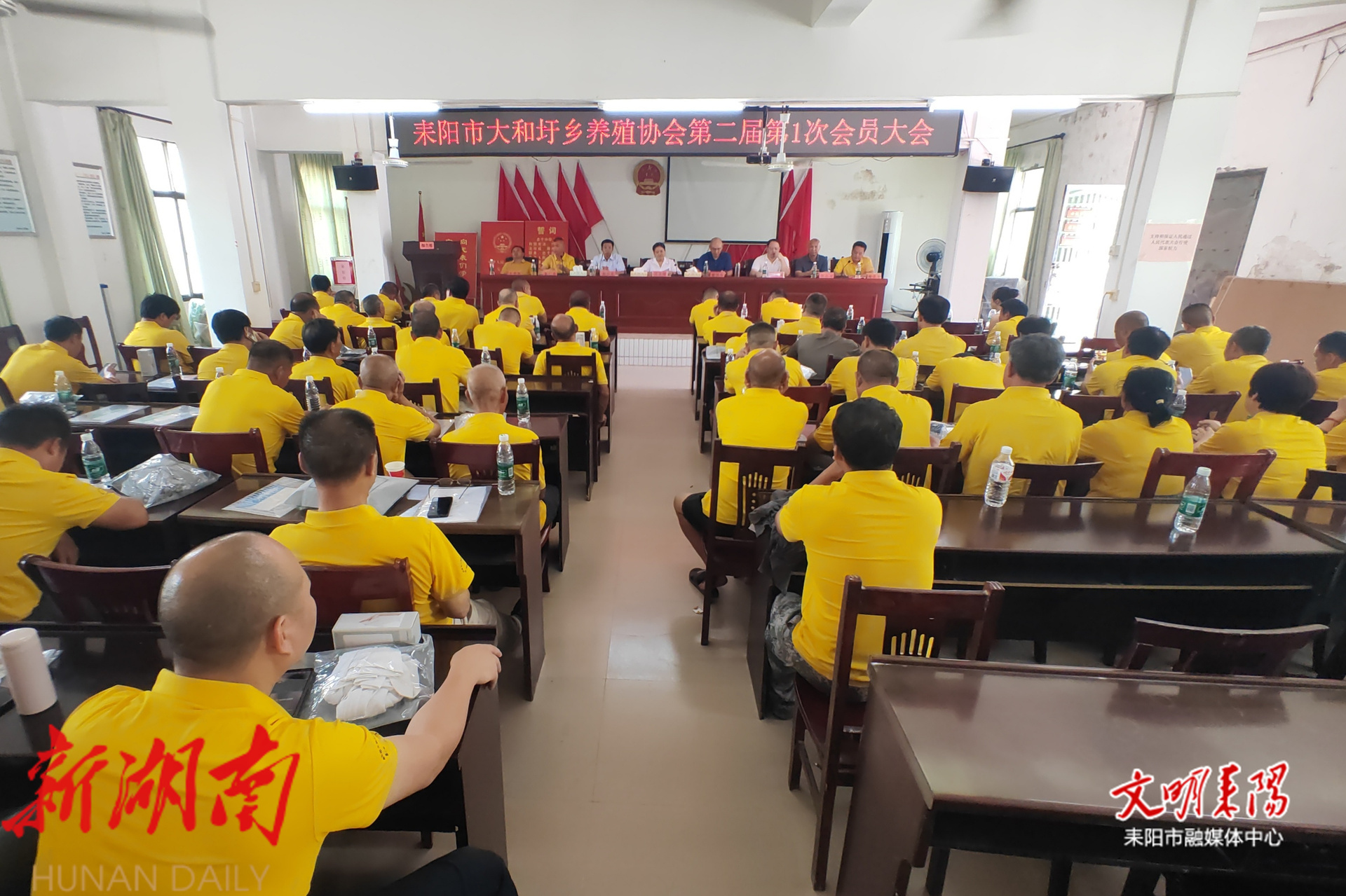 耒阳融媒7月9日讯(记者 刘晗) 7月9日,耒阳市大和圩乡养殖协会召开第二届会员大会,完成换届选举工作,61名协会成员参加会议。