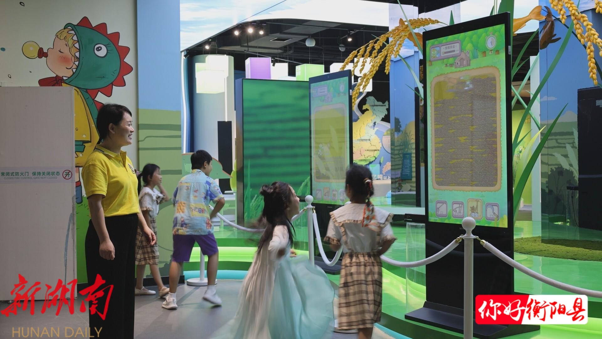 在衡阳粮食科技博览馆,小朋友们正在讲解员的带领下,借助动态画卷、三折巨幕、微缩地形沙盘等科技手段,探索水稻的“前世今生”。大家还通过体感游戏,模拟耕地、播种、插秧、收割全过程,或化身“稻田小卫士”,与害虫“斗智斗勇”。二楼的美食DIY区更是充满趣味,孩子们将大米做成寿司、饭团等美食,在沉浸式体验中感受“粒粒皆辛苦”的深意。