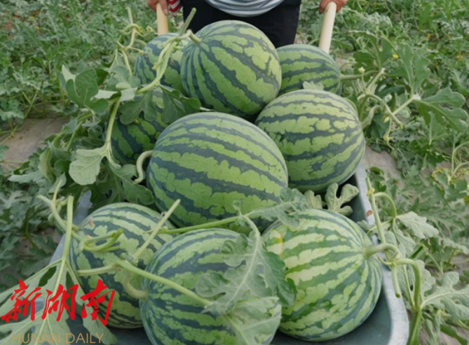 西瓜丰收产销忙。黄田铺镇名山岭村的西瓜田里,饱满的西瓜缀满藤蔓。村民刘小丽分享挑选经验:“成熟西瓜瓜棱饱满、表皮泛黄,敲击声沉闷。”当地网红通过短视频平台,以生动形式展示西瓜“脆甜多汁”的特点,助力农产品销售。