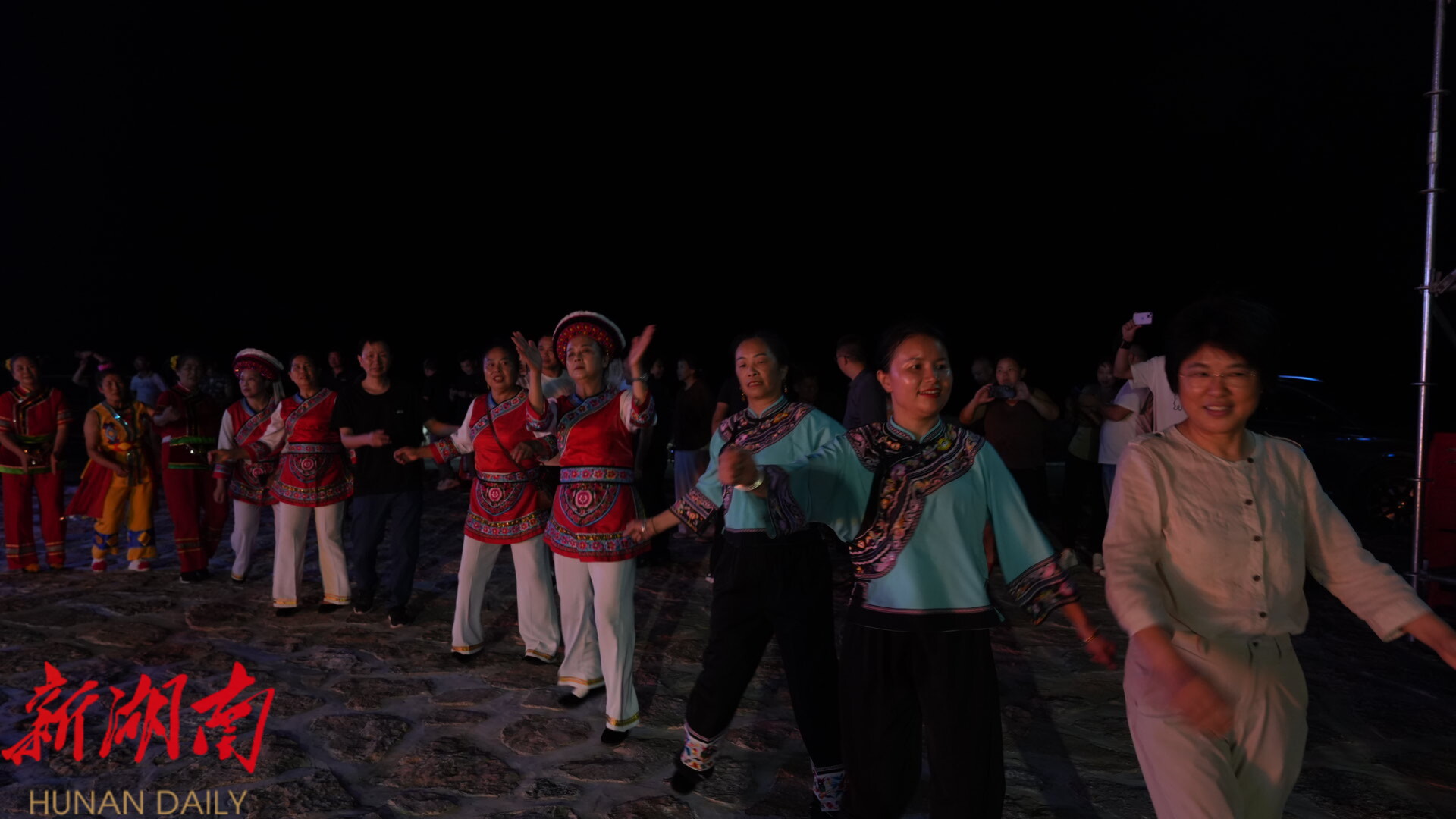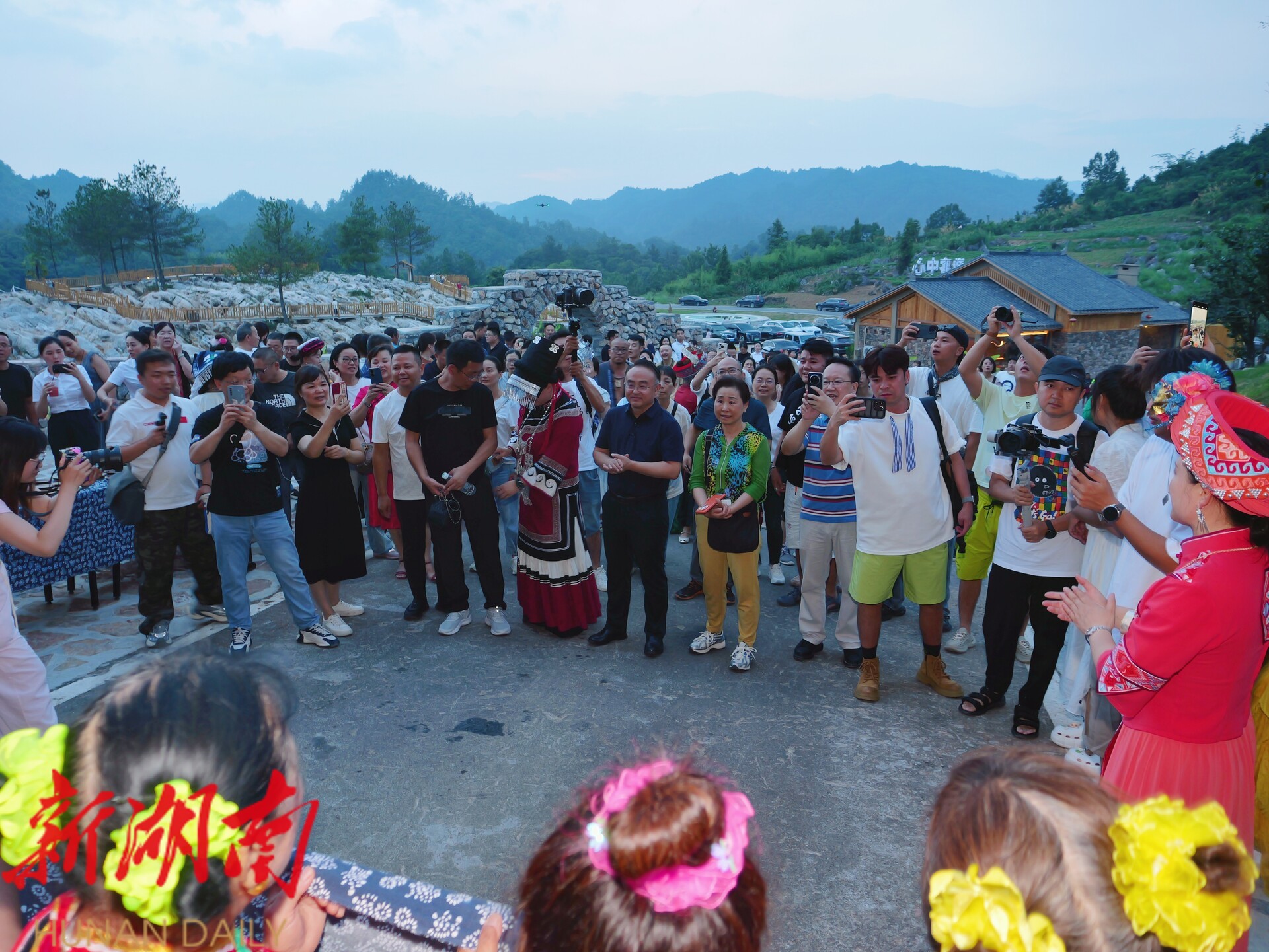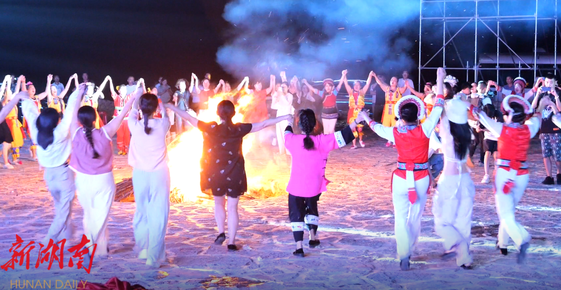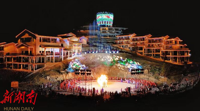 当重庆的热辣邂逅土家豪情,夜晚的阿巴砦,有好酒好茶待客来。在阿巴砦,嘉宾们体验了拦门酒、迎宾歌特色环节,听桑植民歌,参与了土家族婚嫁习俗互动。当璀璨的“女儿冠”灯光秀点亮夜空,熊熊的篝火旁,宾主载歌载舞,共话情谊,将活动气氛推向高潮。