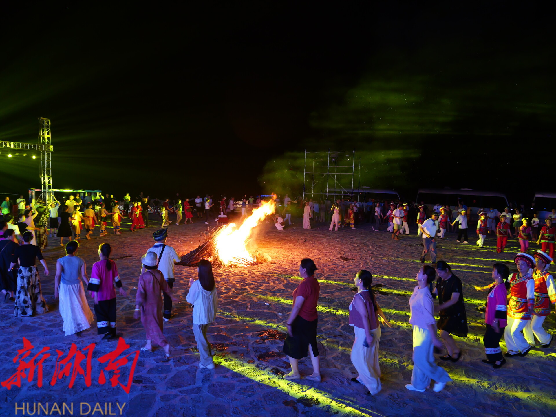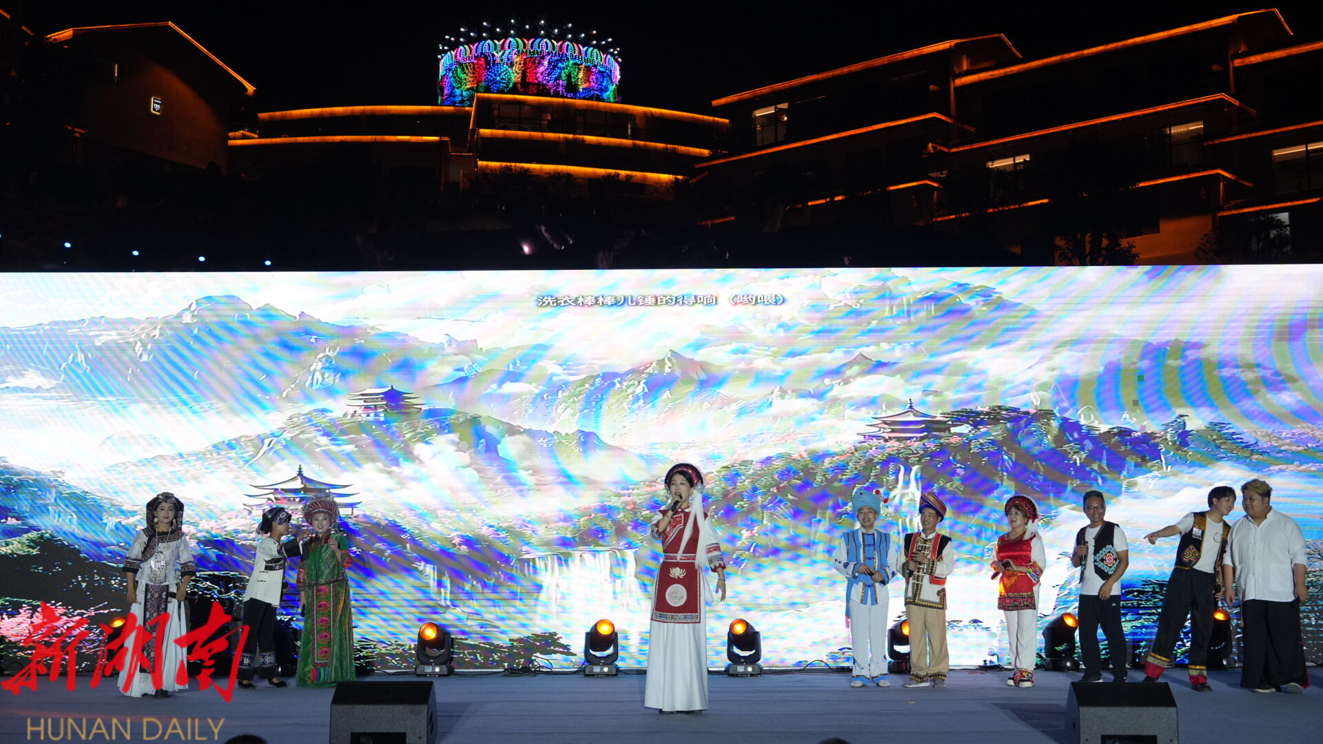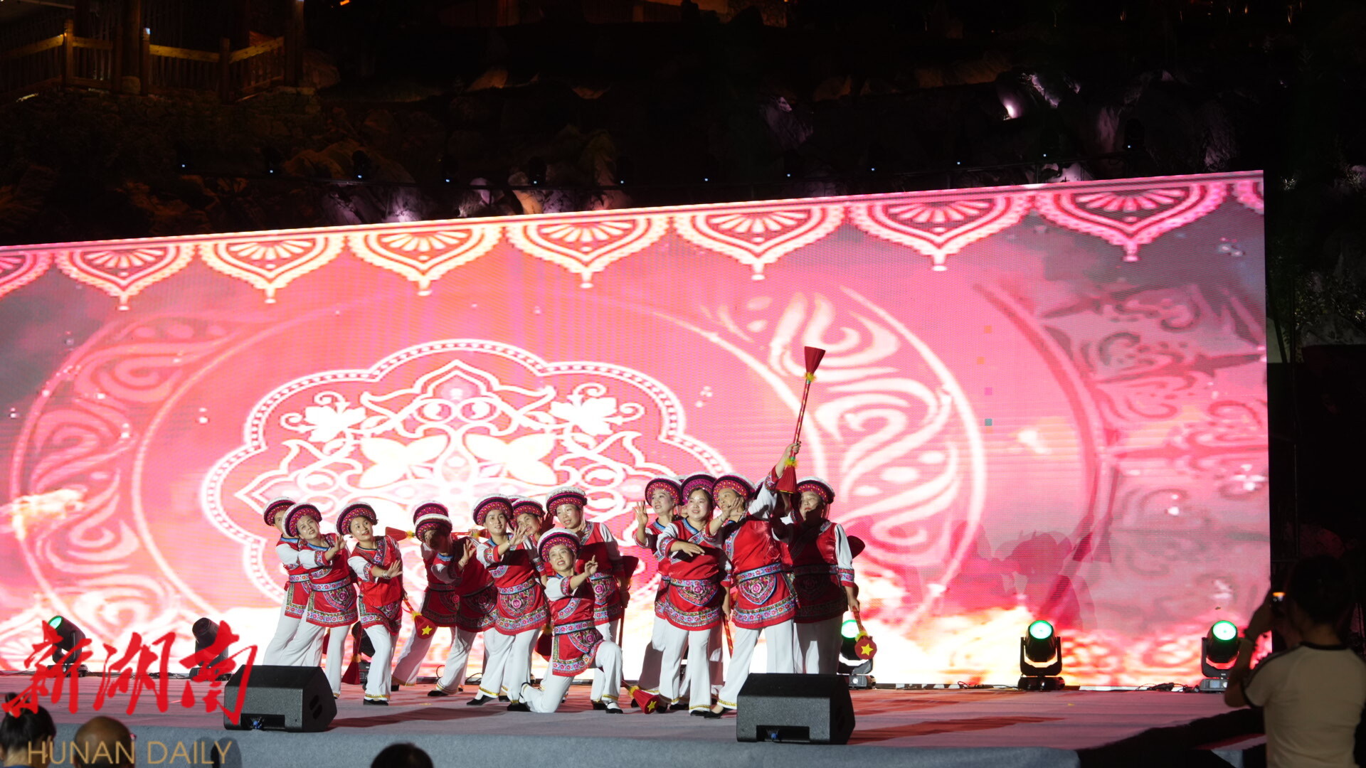 当重庆的热辣邂逅土家豪情,夜晚的阿巴砦,有好酒好茶待客来。在阿巴砦,嘉宾们体验了拦门酒、迎宾歌特色环节,听桑植民歌,参与了土家族婚嫁习俗互动。当璀璨的“女儿冠”灯光秀点亮夜空,熊熊的篝火旁,宾主载歌载舞,共话情谊,将活动气氛推向高潮。