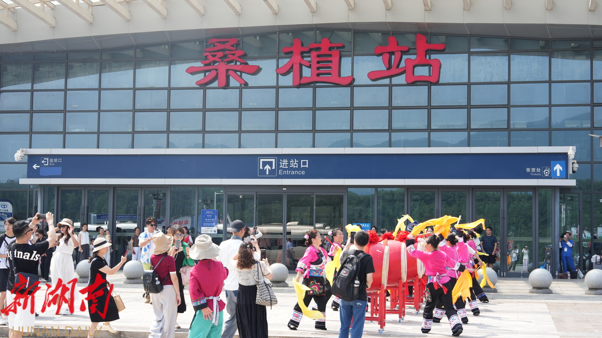 上午10时22分,G2427次列车准时驶入桑植站。出站口,激昂的迎宾大鼓敲响,芬芳的鲜花献上,桑植人民以最质朴的热情,迎接远道而来的山城宾客。“大家非常的热情,非常期待在这边的旅行!”自媒体达人“葡小映”说道。