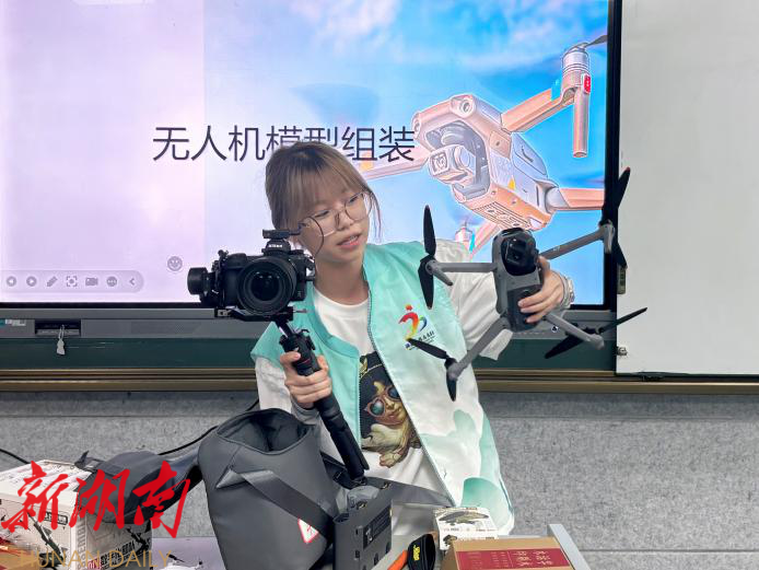 新桂阳7月13日讯,(通讯员 邹勇、史谦、钟好、方晗、胡萍) 舂陵江中心学校的教室里,笑声与惊叹声此起彼伏。一堂特别的“科技魔法课”在这里上演。湖南大众传媒职业技术学院“光影青春”志愿服务团队的大学生哥哥姐姐们,带着酷炫的无人机和专业的摄影摄像设备走进校园,为孩子们开启了一场充满惊喜的传媒科技探索之旅。