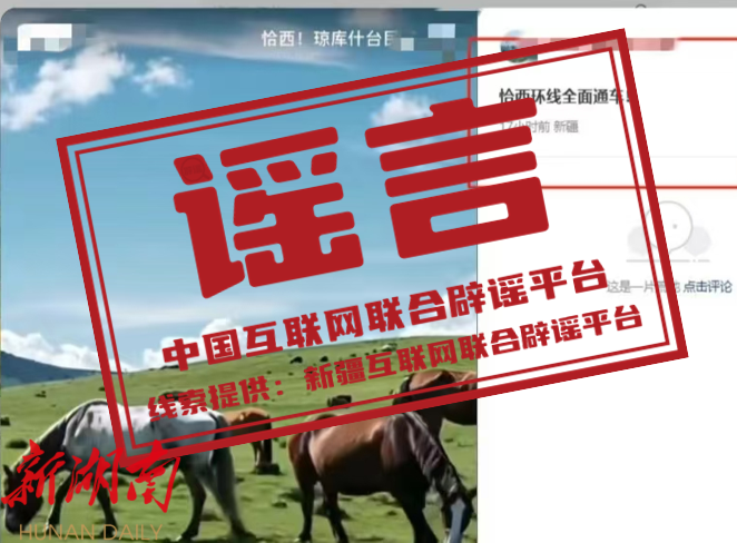真相: 近日,有网民发布新疆伊犁“恰西环线全面通车”的消息,引发关注讨论。经相关部门核实,该信息为谣言。目前,恰西-库尔德宁西沟环线临时开通,恰西-塔里木环线部分开通,限制驶入车辆类型,且每日19点后限制通行。(来源:“新疆网络辟谣”微信公众号)