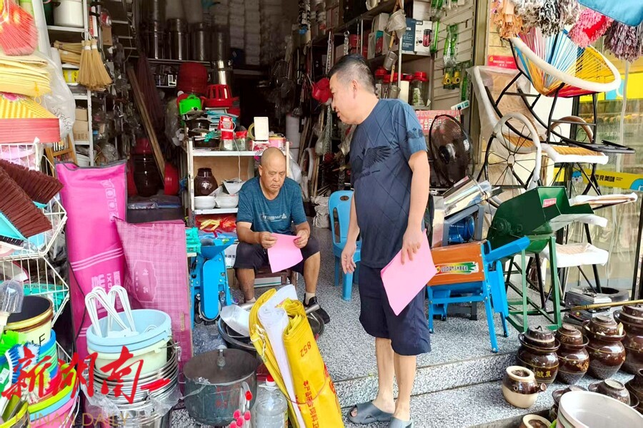 视外桃源客户端7月11日讯(通讯员:王钟闻)为切实改善集镇人居环境,解决当前存在的卫生死角、秩序混乱、环境脏乱等问题,近日,镇综合行政执法大队向集镇居民发放了《集镇街道商户(住户)“门前三包”责任及垃圾清运告知书》,旨在进一步明确居民在维护集镇环境中的责任与义务,携手共建整洁、有序、美观的集镇家园,得到了广大居民的积极关注与响应。