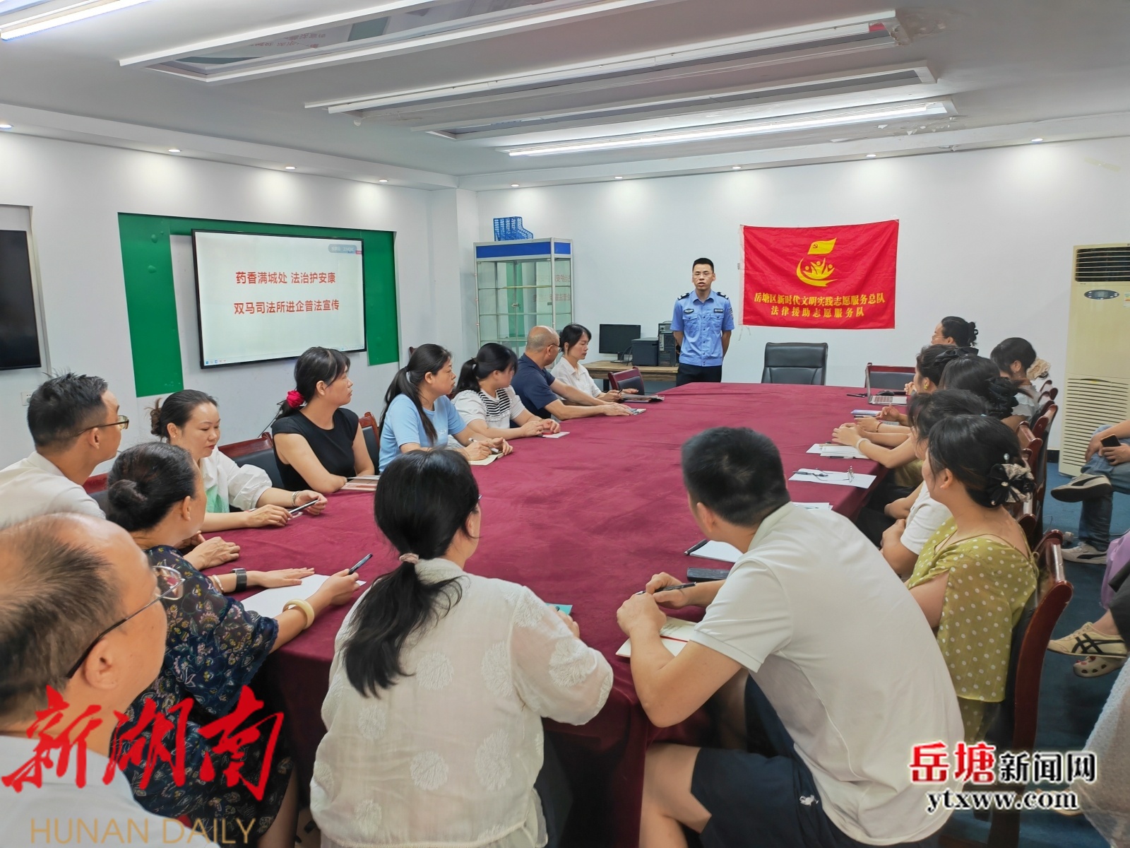 岳塘融媒7月11日讯 (通讯员: 朱维 魏勇林 李晨) 为进一步优化法治化营商环境,护航医药市场健康发展,提升企业及职工依法经营、防范风险的法律意识,近日,岳塘区司法局双马司法所赴辖区药企湖南湘众医药有限公司,开展优化法治化营商环境专项普法活动。