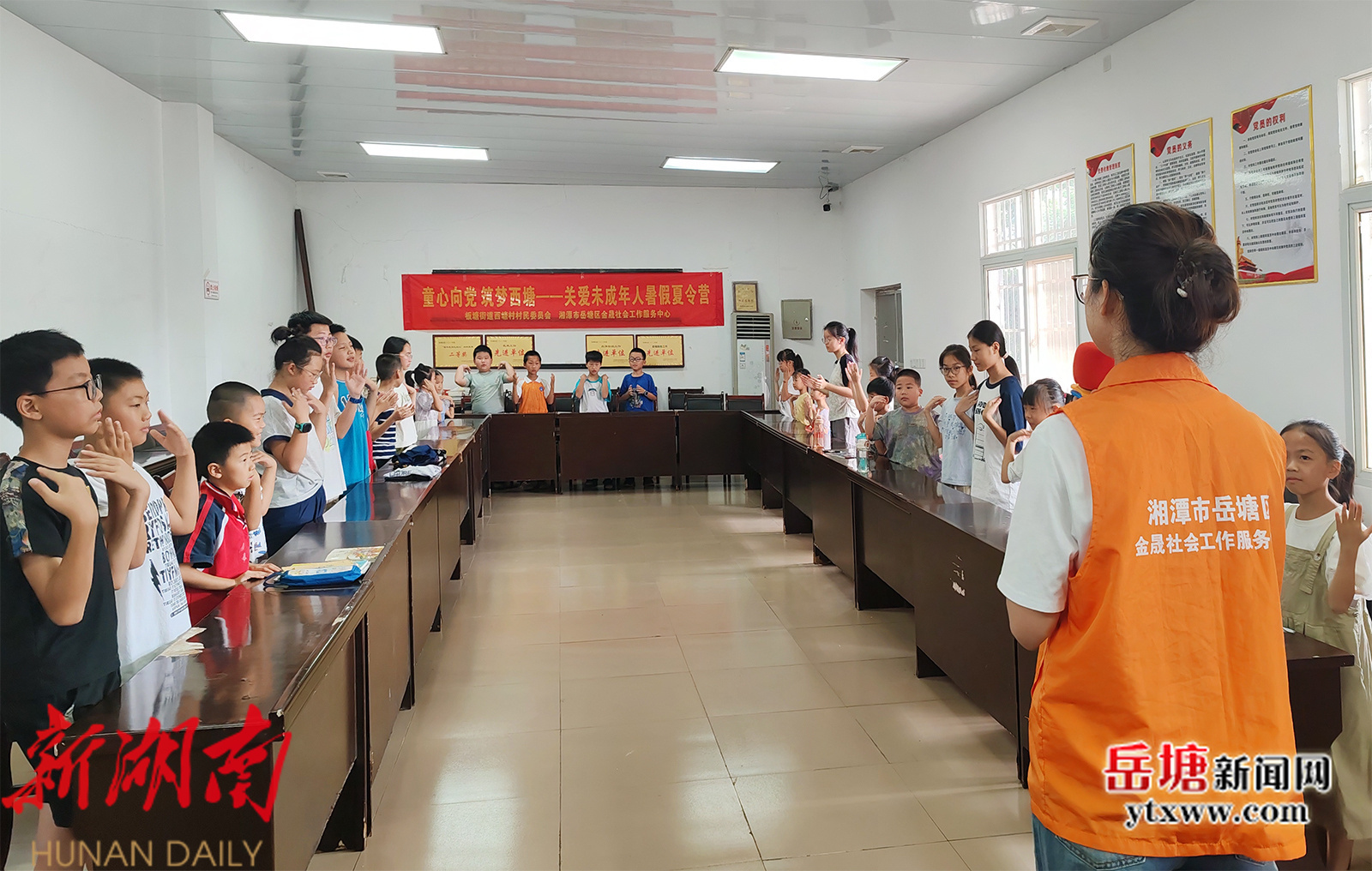 岳塘融媒7月10日讯 (通讯员: 朱维 郭子佳)“小朋友们,我们能私自去河边游泳吗?”近日,板塘街道西塘村联合街道社工站举办的未成年人夏令营现场热闹非凡,一堂别开生面的防溺水知识讲座在这里举行,社工志愿者化身“安全卫士”为孩子们带来了一场防溺水知识课。