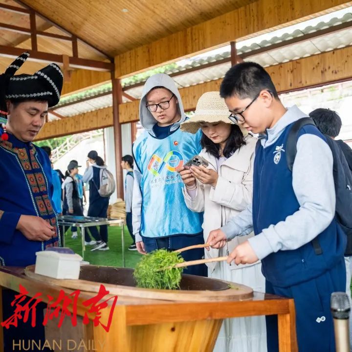 主题公园参加研学活动后发出感慨。在讲解员的带领下,学生们走进莓茶园,学习如何采摘鲜嫩的芽尖,随后又来到非遗制茶工坊,目睹了莓茶从鲜叶到成品茶的神奇转变,沉浸式体验了张家界莓茶文化的魅力。