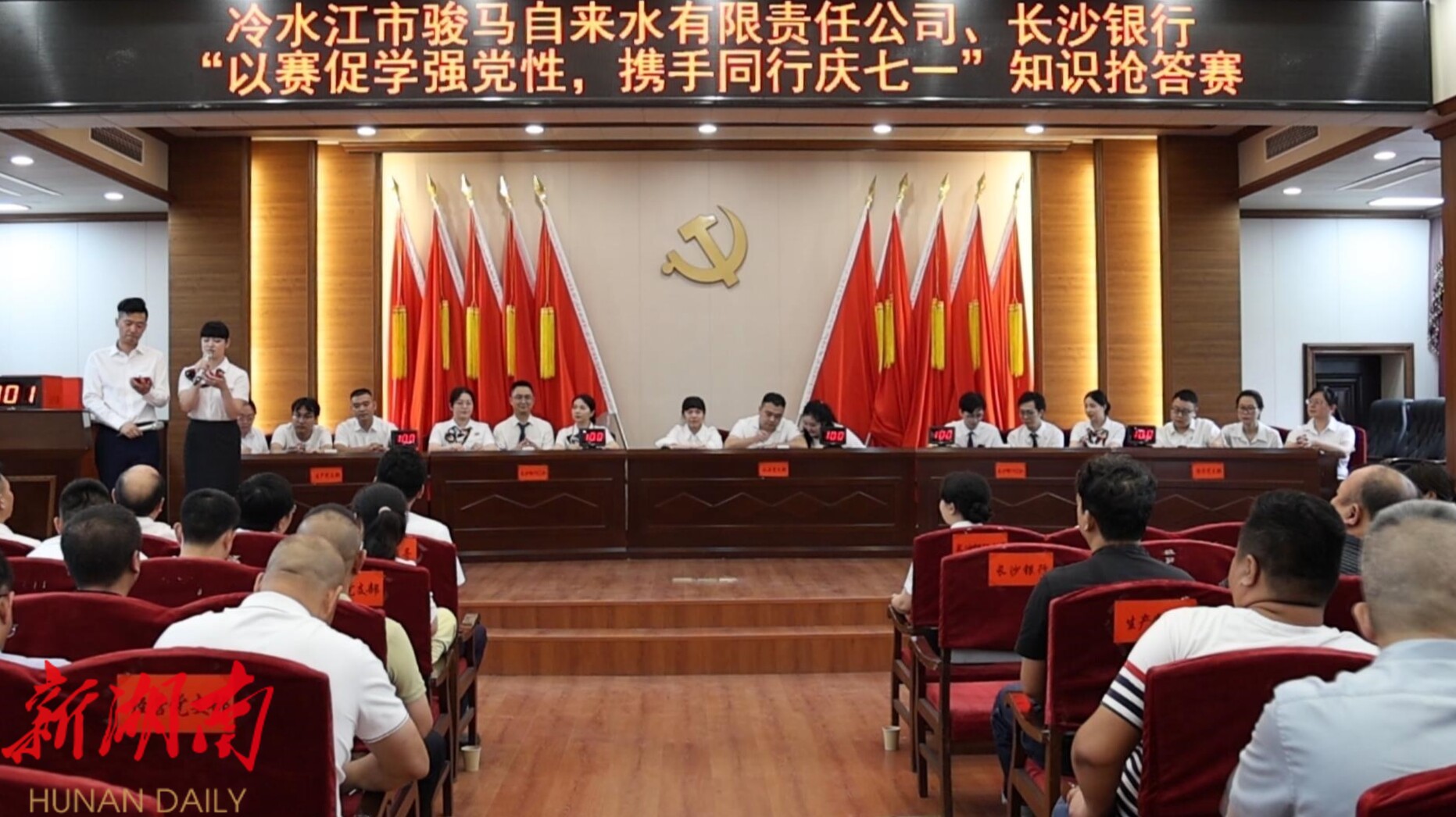 冷水江市骏马自来水公司与长沙银行联合举办党建知识抢答赛