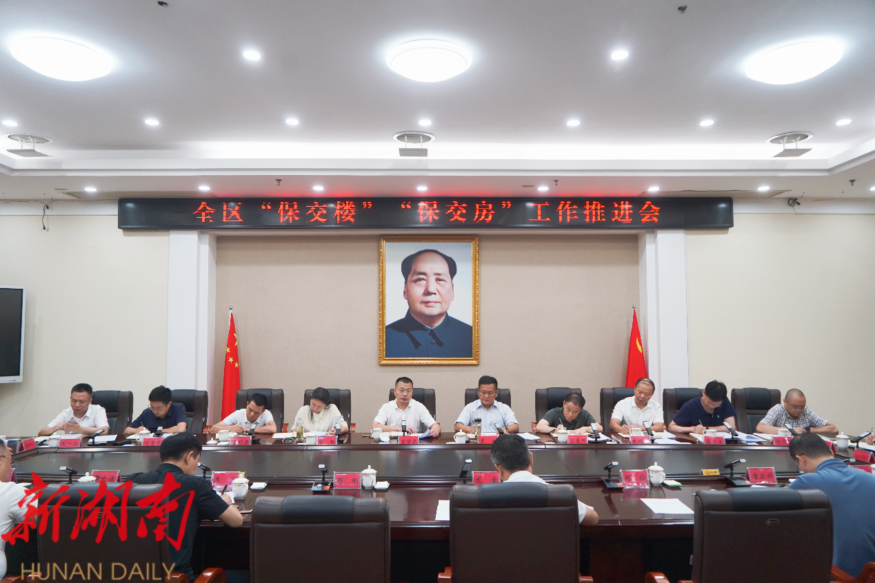蒸湘融媒7月14日讯(记者 彭妮璇) 为深入贯彻落实市委保交楼保交房工作推进会议精神,统筹推进辖区相关项目建设,维护房地产领域平稳有序和社会大局稳定,7月14日,区委书记曾梦龙主持召开“保交楼”“保交房”工作推进会议。区委副书记、区长李健及全体在家区级领导参加。