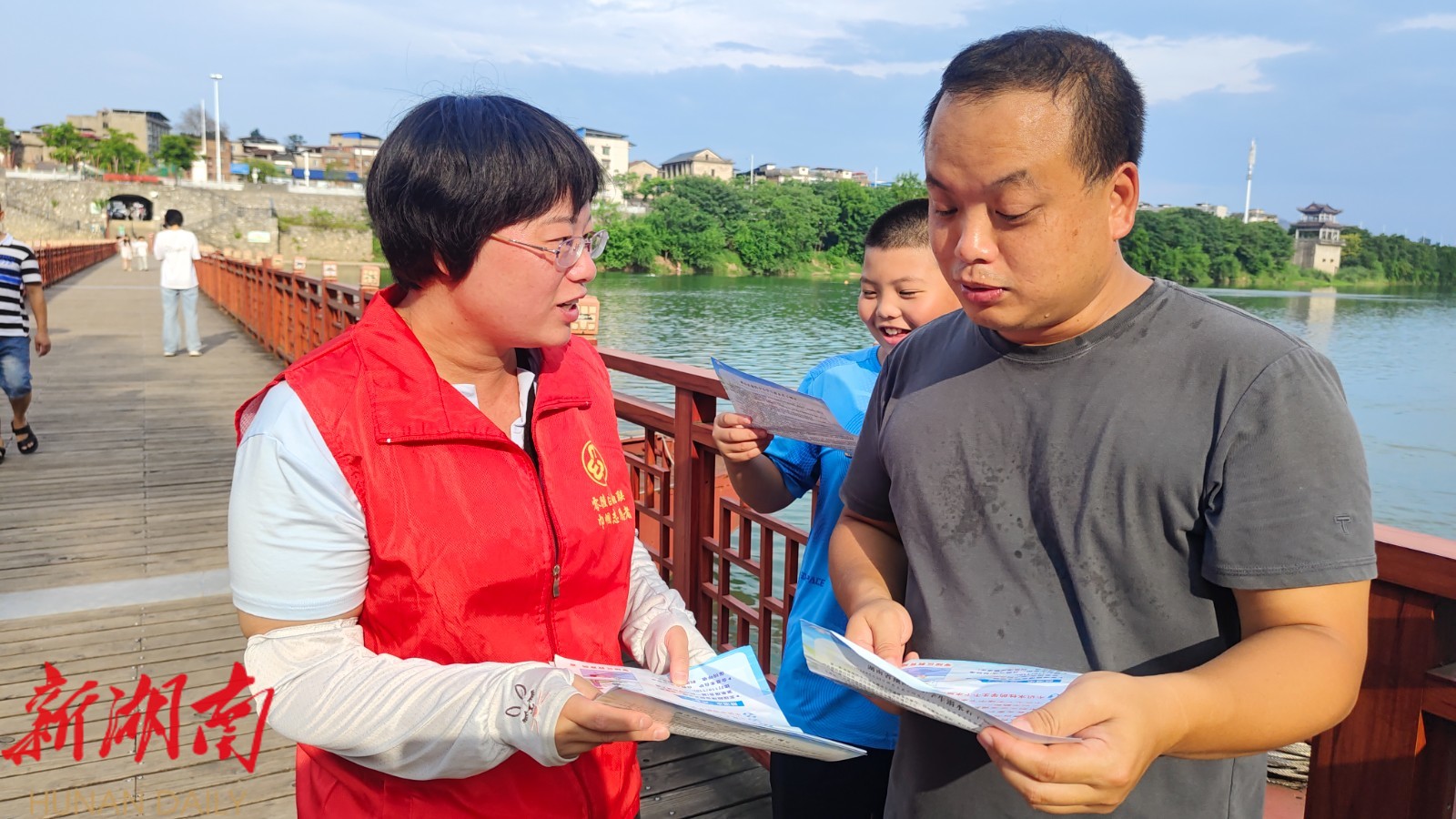 活动中,妇联工作人员与志愿者分组驻守在潇水河等重点水域周边的码头及沿岸步道等人员密集区域。向过往的居民、尤其是带孩子的家长发放《防溺水安全须知》《家庭监护责任提示》等宣传资料,用接地气的方言详细讲解夏季溺水高发的原因及“七不准”安全准则。针对青少年群体,志愿者还结合近期典型案例,强调不私自下水、不盲目结伴游泳的重要性,提醒孩子们遇到同伴溺水时,要大声呼救并寻求成人帮助,切勿擅自下水施救。
