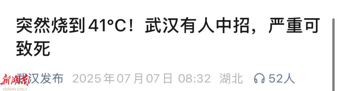 “武汉发布”公众号也称,7月5日下午,武汉市江汉区73岁的王先生 因连续高温天气仍坚持不开空调 ,仅靠电风扇降温,中暑昏迷,送医后确诊为 “热射病” 。