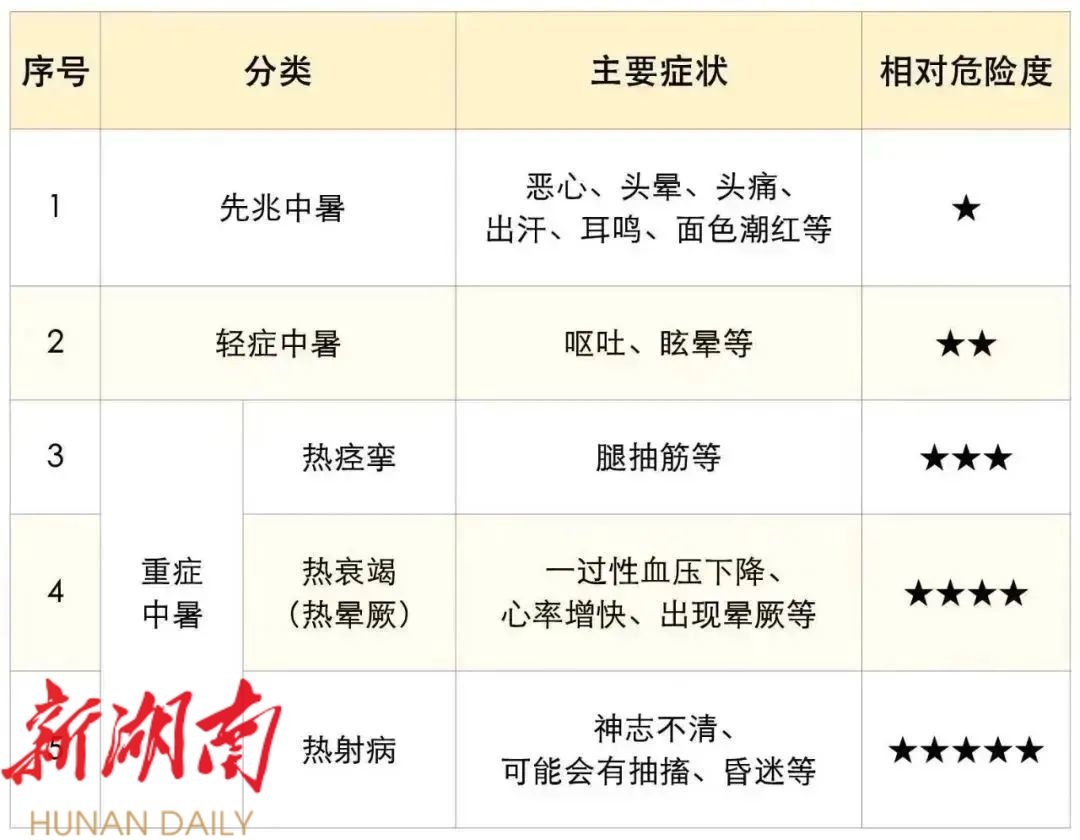 西安市人民医院航天城院区急诊应急中心副主任孙蓉介绍,临床上根据发病过程及轻重程度,可将中暑分为:先兆中暑、轻症中暑和重症中暑 。