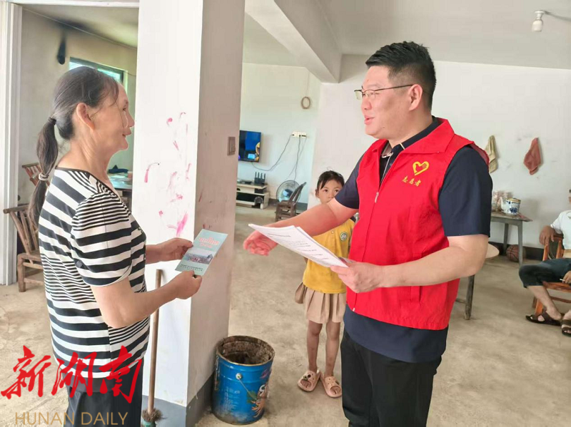 湖南日报·新湖南客户端7月15日讯(通讯员 余璇子)“娭毑,这是防电诈宣传单,这几种骗局最常见,手机里陌生链接千万别点!”近日,湘阴县石塘镇的党员志愿者们身着红马甲,手持宣传资料穿梭在乡村小巷,将防电诈知识送到群众家门口。这场“党建+防电诈”入户宣传活动,精准提升了村民的防骗识骗能力,为守护村民财产安全筑起坚实屏障。
