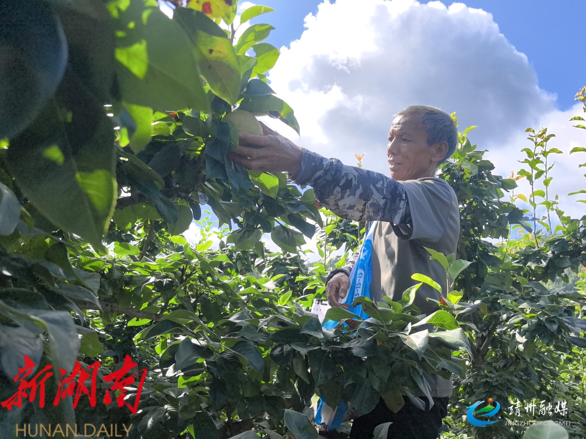 靖州融媒7月15日讯 (记者 周悦伊)7月15日,靖州苗族侗族自治县渠阳镇林源村800余亩翠冠梨进入采摘期。青黄果实压弯枝头,阳光透过叶隙洒在果面,清冽果香随山风弥漫。一幅丰收图景在山间铺展。