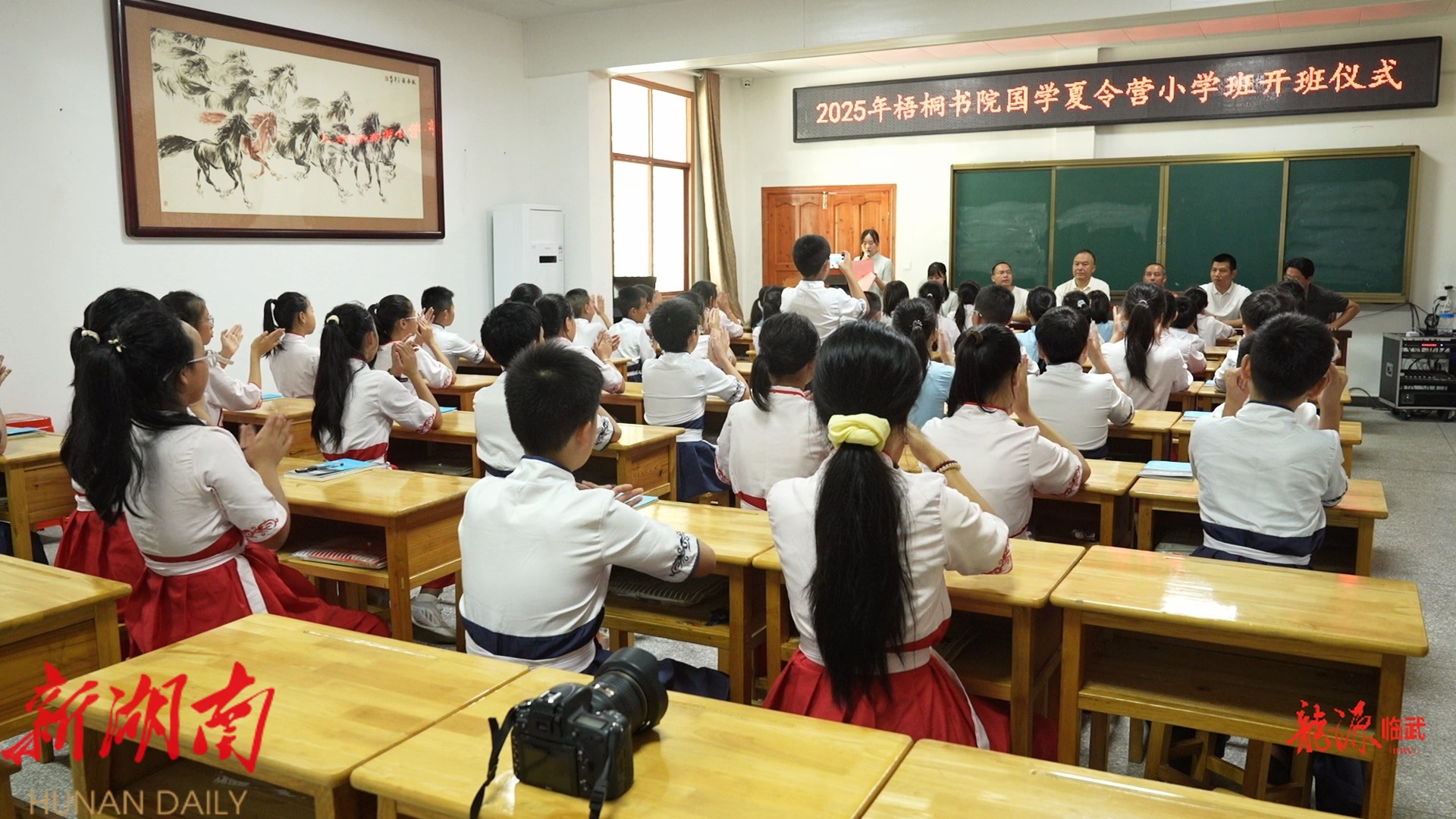 龙源临武客户端7月15日讯(记者 何城基 通讯员 李赟)7月15日,临武县2025年国学夏令营开营仪式在梧桐书院举行,来自全县各小学的48名学生将在书院开启为期5天4晚的传统文化浸润之旅,深度感悟国学的独特魅力。