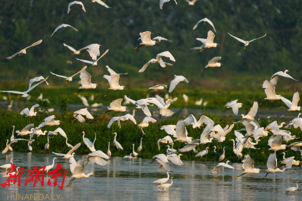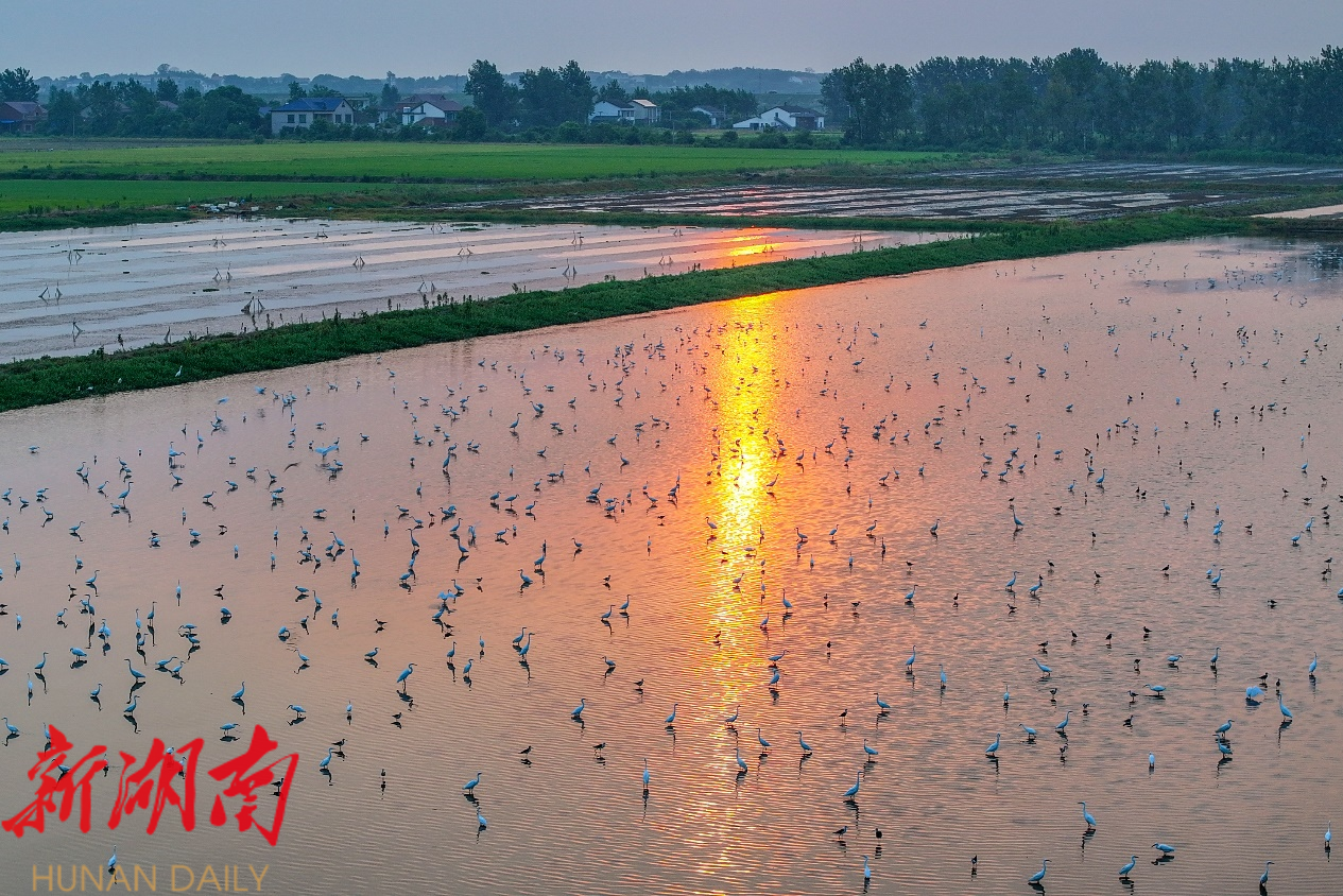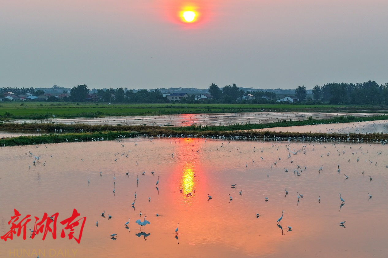 湖南日报·新湖南客户端7月16日讯(通讯员:宋政军) 清晨,盛夏的暑气早已浸透洞庭湖畔的田野,岳阳屈原管理区凤凰乡已被一层鎏金般的朝霞唤醒。随着洞庭湖区生态环境持续向好,这片水草丰美的湿地正上演着动人的自然乐章。