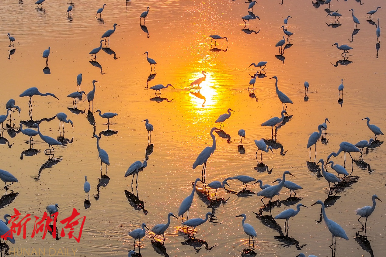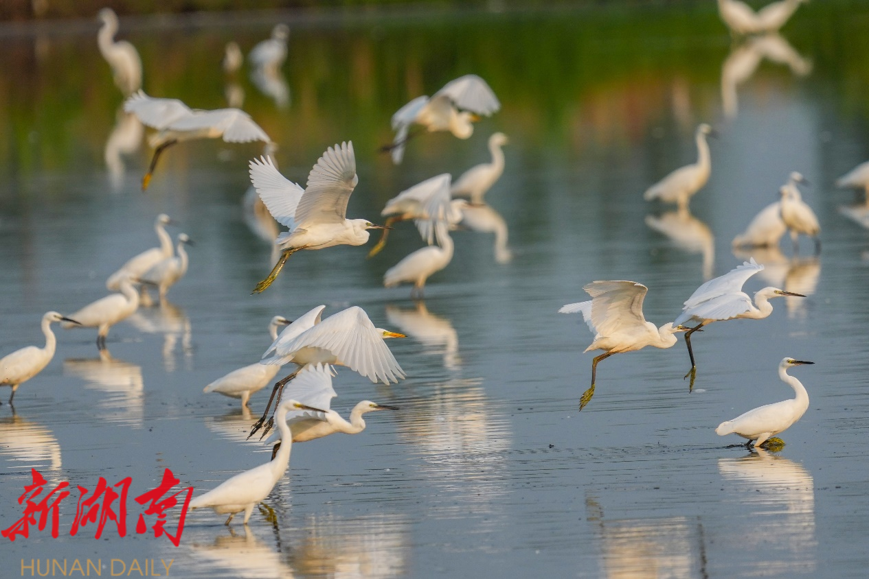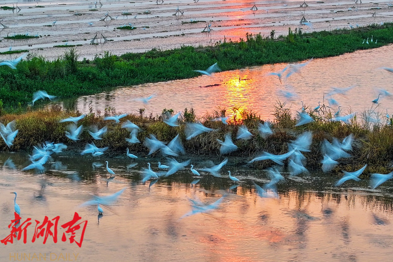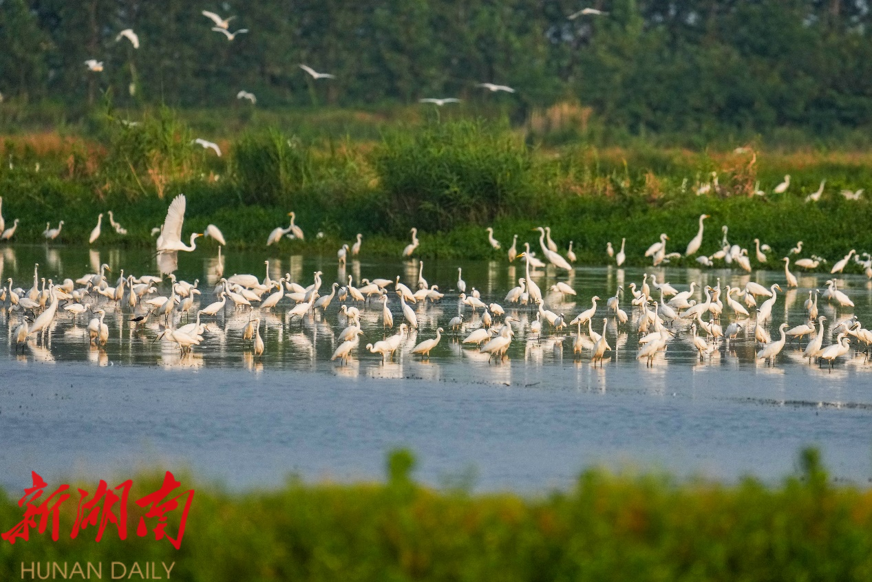 湖南日报·新湖南客户端7月16日讯(通讯员:宋政军) 清晨,盛夏的暑气早已浸透洞庭湖畔的田野,岳阳屈原管理区凤凰乡已被一层鎏金般的朝霞唤醒。随着洞庭湖区生态环境持续向好,这片水草丰美的湿地正上演着动人的自然乐章。