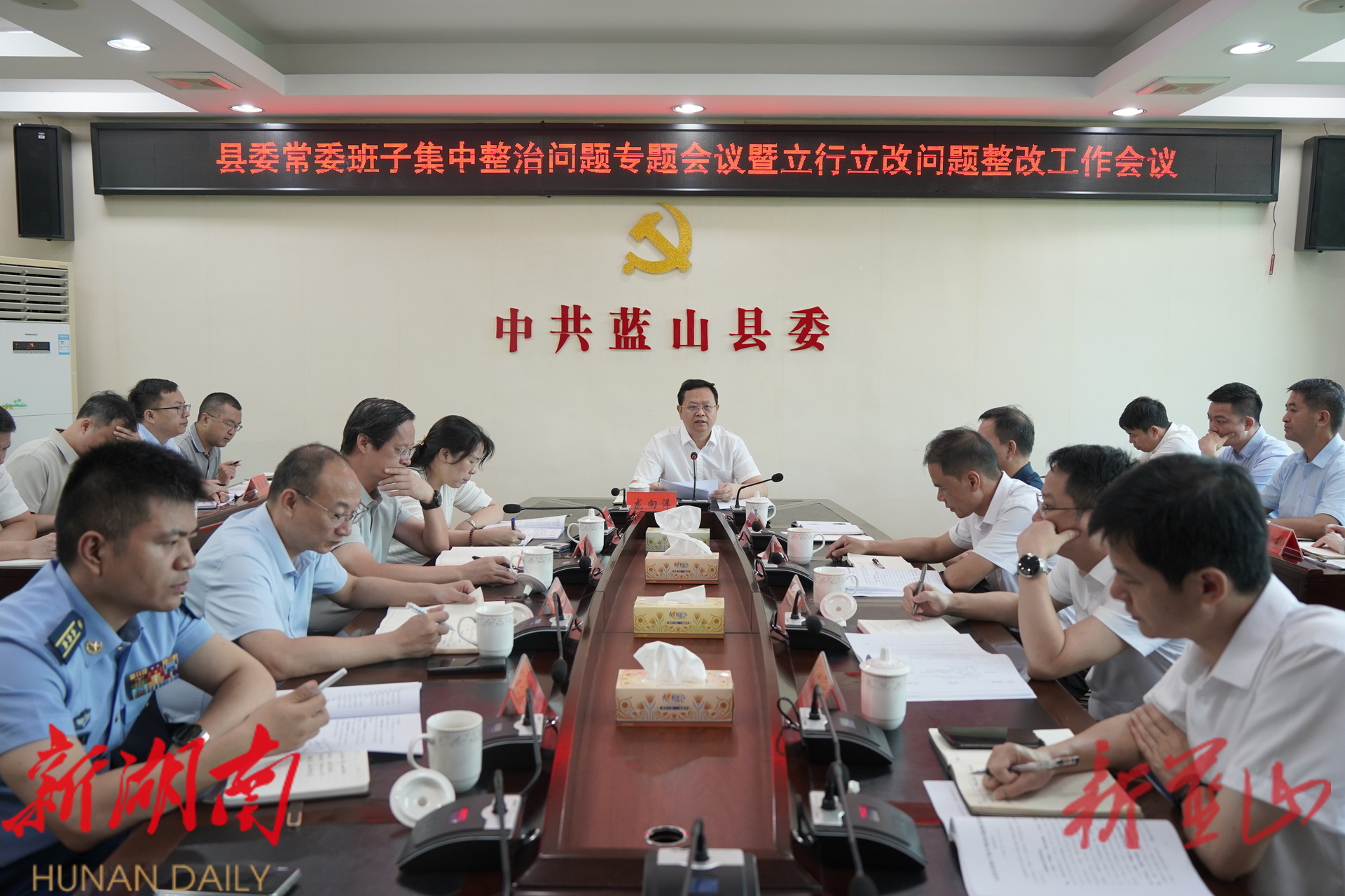 新蓝山客户端 7月15日讯 (通讯员 肖兴康 )7 月 15 日,蓝山县委书记龙向洋主持召开县委常委班子集中整治问题专题会议暨立行立改问题整改工作会议,强调要深入学习贯彻习近平总书记关于加强党的作风建设的重要论述精神,以高度政治自觉抓好问题整改整治,把严的基调、严的措施、严的氛围长期坚持下去,推动全县学习教育走深走实。