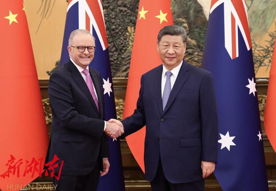 阿尔巴尼斯表示,近年来,澳中关系取得积极进展。澳方十分珍视对华关系,期待同中方一道,平等相待,求同存异,互利合作,推动澳中关系发展,这符合两国的共同利益,也有利于地区稳定繁荣。澳方坚持一个中国政策,不支持“台独”。澳方愿与中方保持各层级交往对话,增进互信。中国的发展对澳大利亚至关重要,澳方从不寻求与中国经济脱钩,愿保持双边贸易畅通,推进绿色产业、应对气候变化、医疗技术等领域务实合作,实现互利共赢。愿加强旅游、教育、体育等人文交流,促进人民相互理解。面对变乱交织的世界,澳方愿与中方坚持多边主义,支持联合国发挥重要作用,共同维护自由贸易和世界贸易组织规则,为国际社会提供更多稳定性、确定性。澳方支持中国担任2026年亚太经合组织东道主。