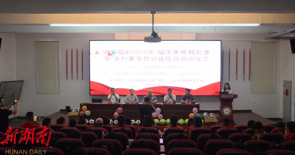 湖南日报·新湖南客户端7月16日讯( 通讯员 范姜茜子) 7月15日,2025年 “福泽潇湘・精彩童年” 乡村夏令营公益项目启动仪式在宁远县正式启动。省福彩中心、市福彩中心相关负责人、县民政局相关负责人、舜陵街道办事处负责人、明德湘南学校师生代表以及志愿者团队成员参加。