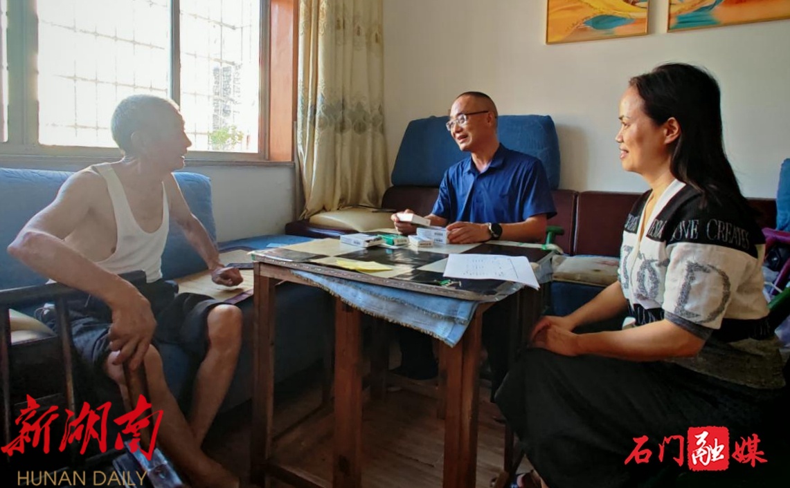 新石门客户端7月16日讯(通讯员 高兵香)“药买好了,现在政策好,办事不用出门,谢谢你们!”7月11日,楚江街道渫阳社区居民陈加兴老人在接受县医保局工作人员入户走访时感激地说。