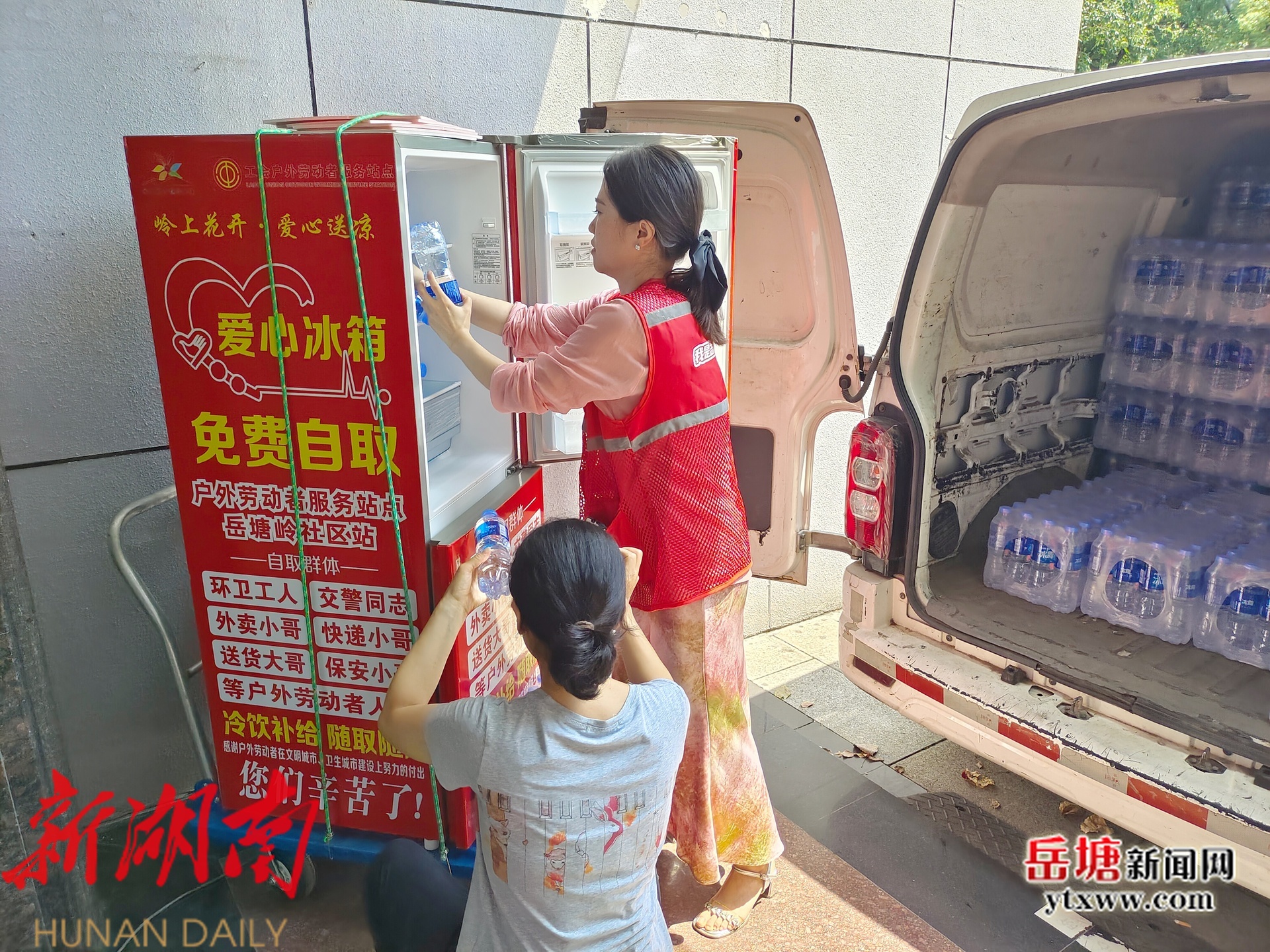 岳塘街头“爱心冰箱”上线 为户外劳动者送清凉